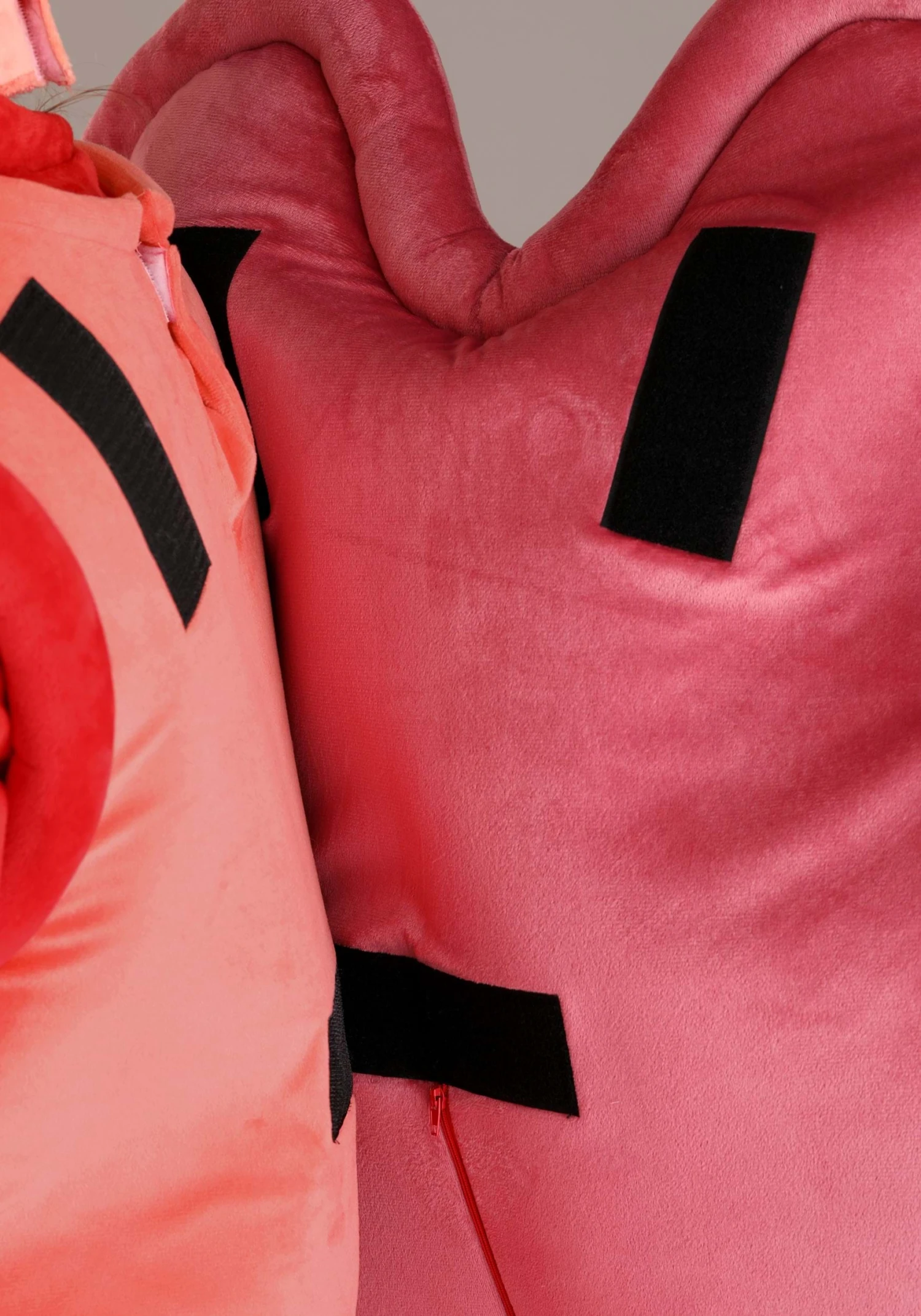 - Foam-backed minky tunic has hook and loop fastener down center back, fiber-filled legs sewn in sides