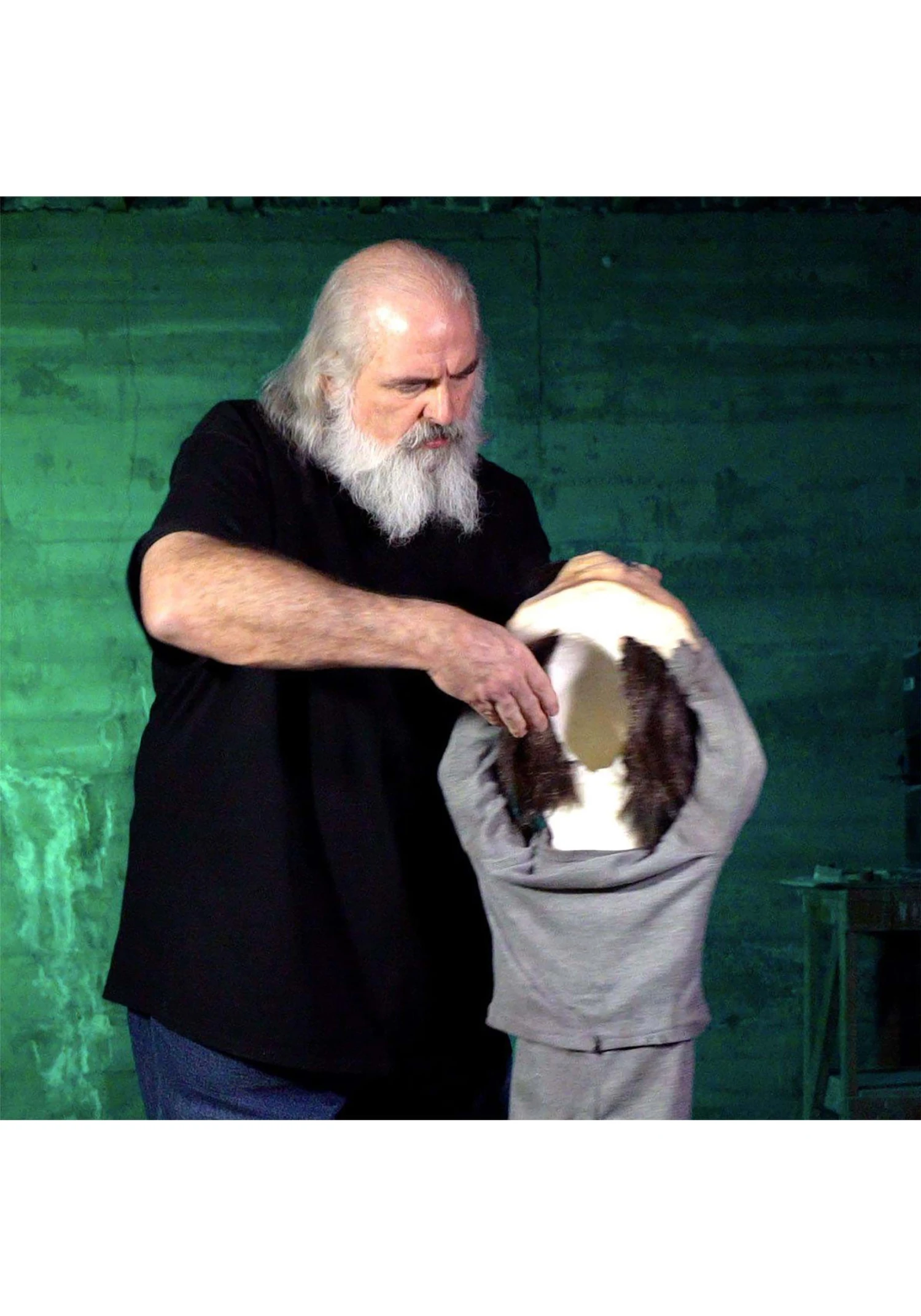 - Fake hand on top makes it appear that you are holding him by his hair