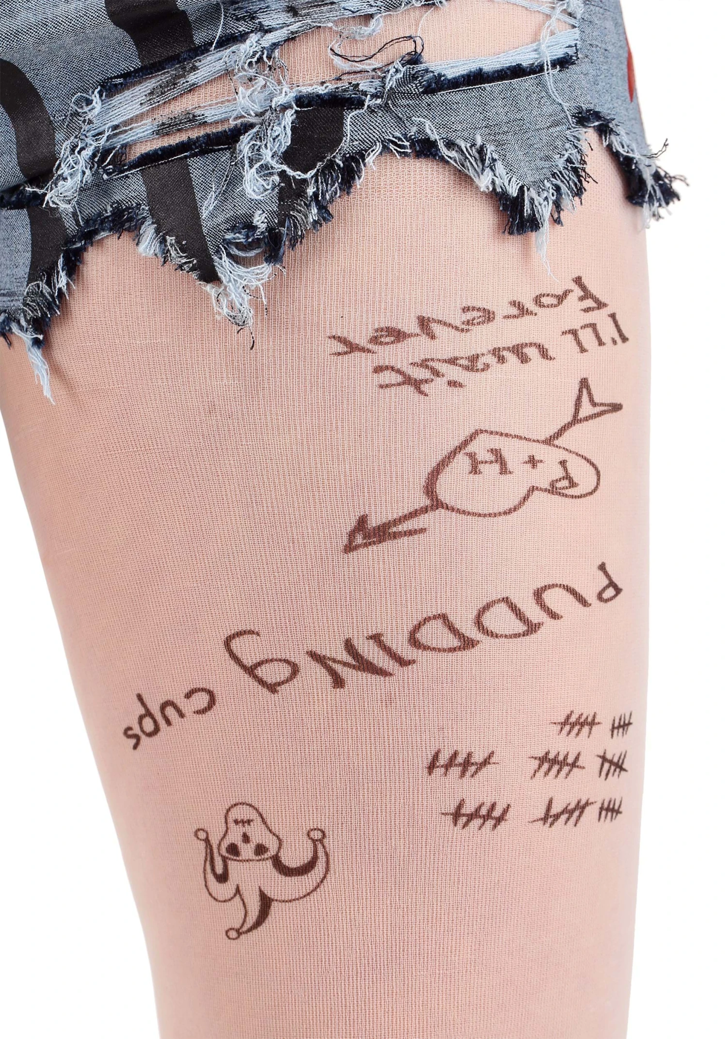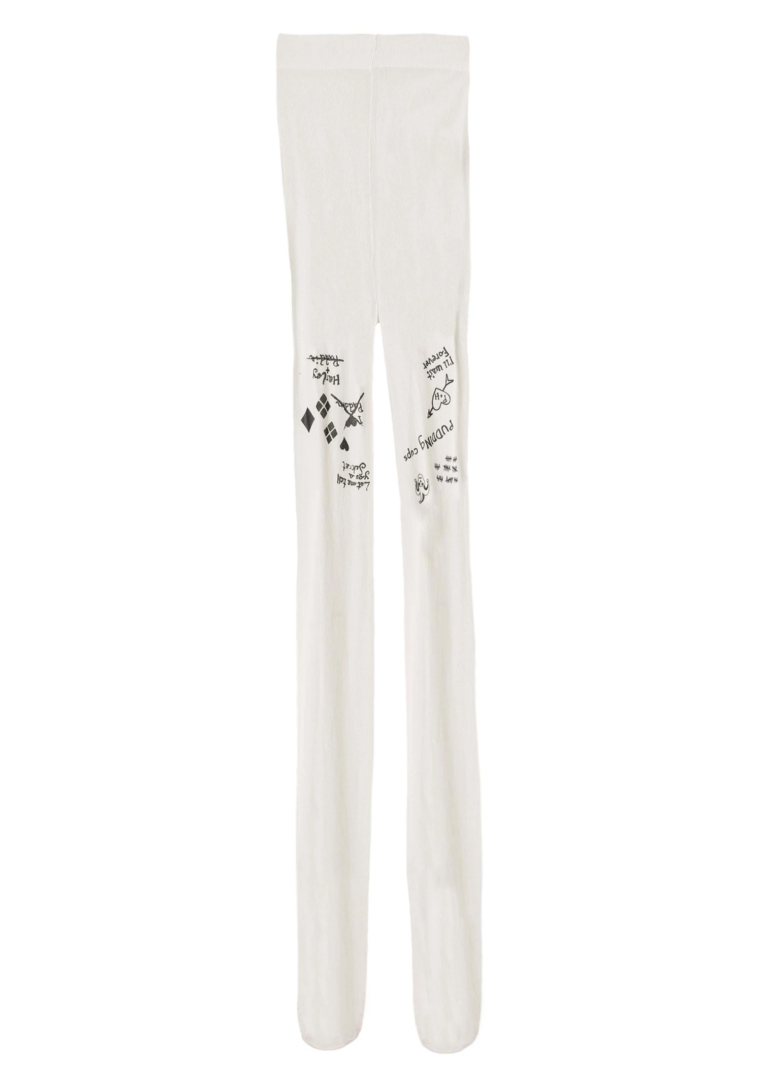 - Printed graphics on the thighs of the tights