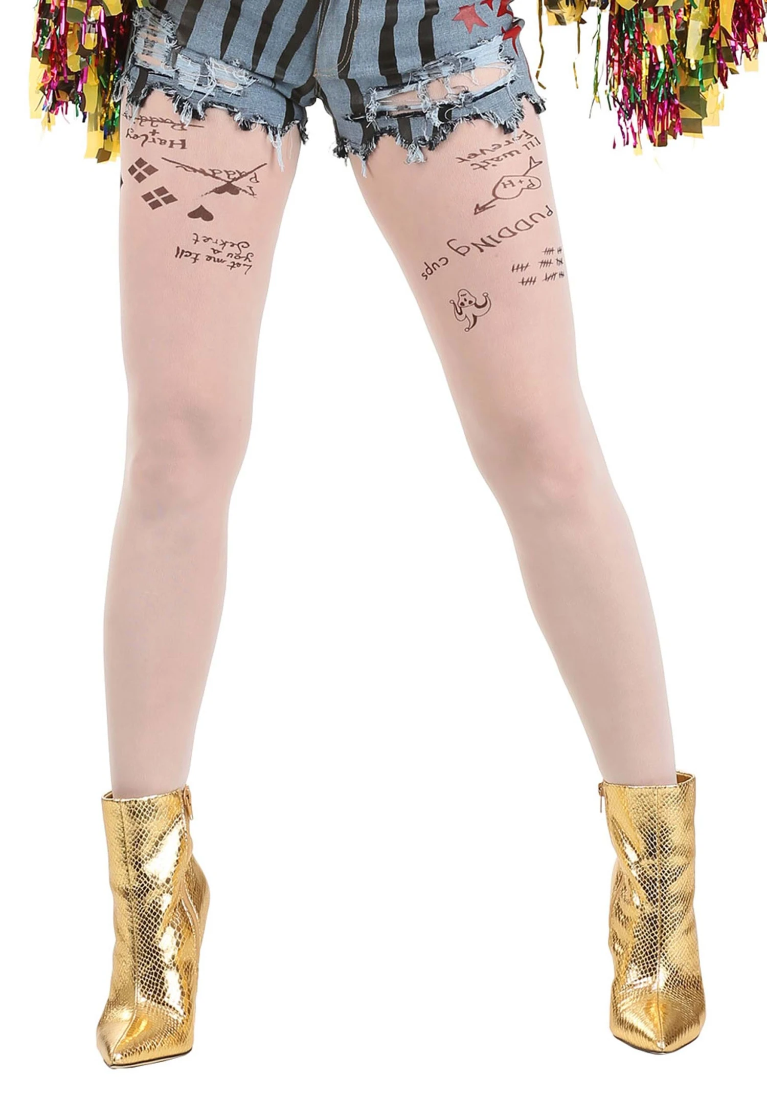 Inspired by Harley Quinn from the Birds of Prey movie, these nylon tights feature printed graphics all over the thighs. They recreate the look of Harley’s tattoos from the film. They stretch to fit and are designed as a one-size-fits-most style. Just pair them up with your Harley Quinn cosplay and you’ll be ready to take Gotham City by storm with your fierce and unpredictable new attitude. Just resist the urge to adopt a few hyenas as pets!