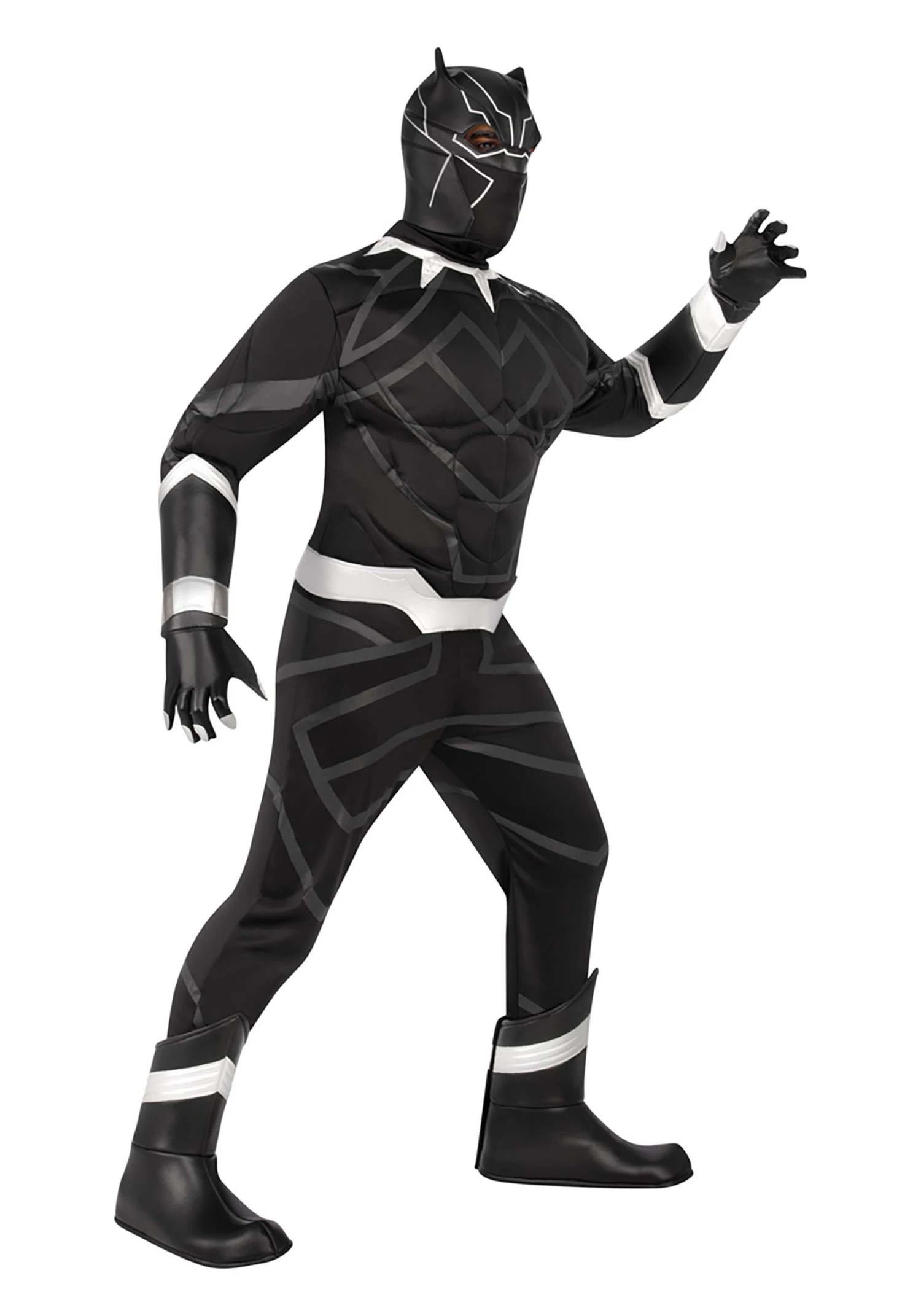 This officially licensed costume recreates the fierce outfit worn by T’Challa in the Marvel Avengers films. It comes with a black jumpsuit that has plenty of printed details to give it a sleek superhero style. The suit also comes with muscle padding in the chest and arms, giving you a fighting physique! It comes with a pair of boot covers that fit over most pairs of shoes, so you can wear your most comfortable kicks while you kick some supervillain butt. Of course, you don’t want the bad guys recognizing you, so you’re going to need a mask! This costume comes with a Black Panther mask to round out the whole look. Once you put it on, you’ll be transformed into one of the greatest superheroes of all time!