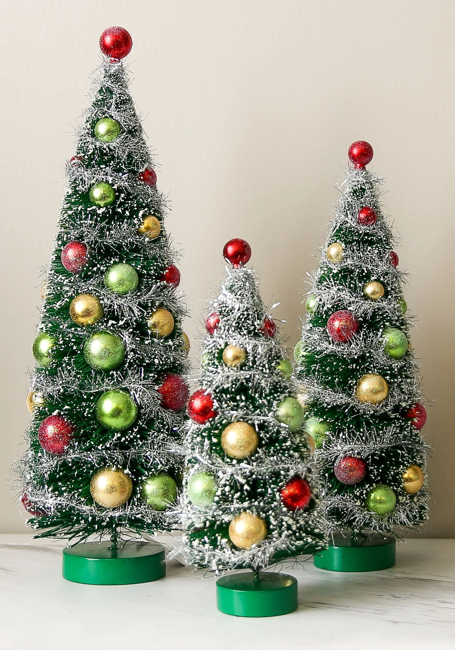 - Trees measure 16″, 13″ and 10″