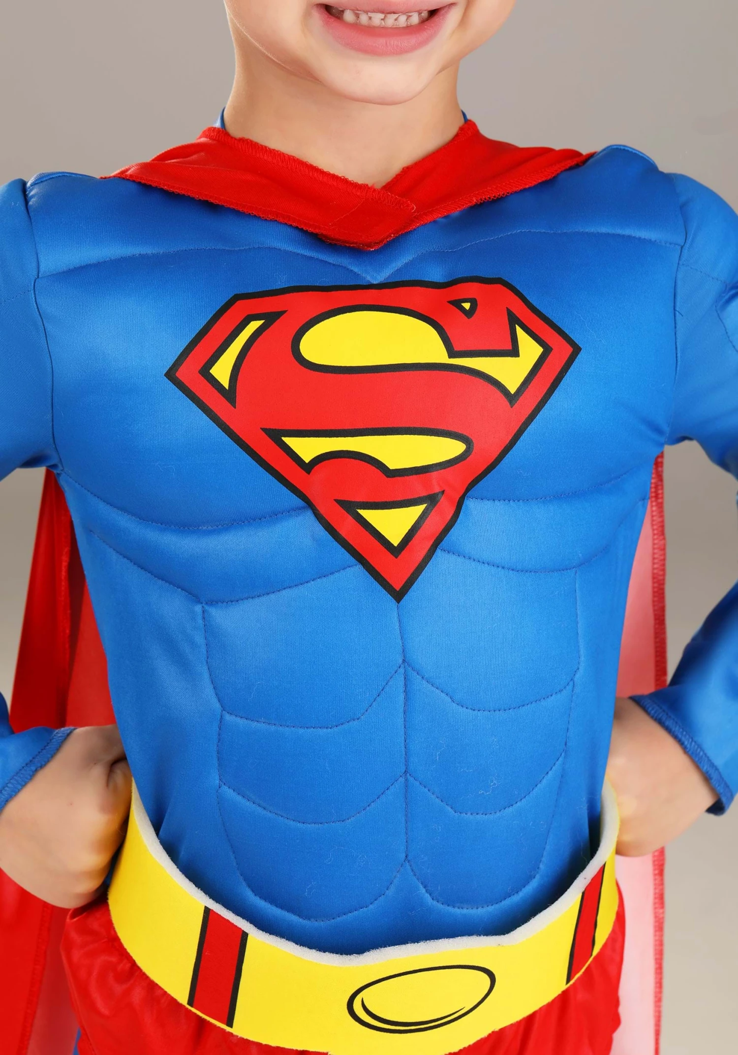 Your toddler will feel on top of the world in this officially licensed Deluxe Classic Superman Toddler Costume! The blue jumpsuit has super-impressive padded muscles sewn into the chest and sleeve area, as well as a big yellow belt that your toddler can rest his fists on when he’s doing the classic Hero Pose. A red and yellow Superman logo is impressively emblazoned in the middle of the chest. Red boot covers protect his feet when he’s rushing to fight crime, and a cape billows impressively when he’s flying to save the day. Extra-special detail: This suit has been proven to withstand up to 50 miligrams of kryptonite! Yes, we’re just that good.Â