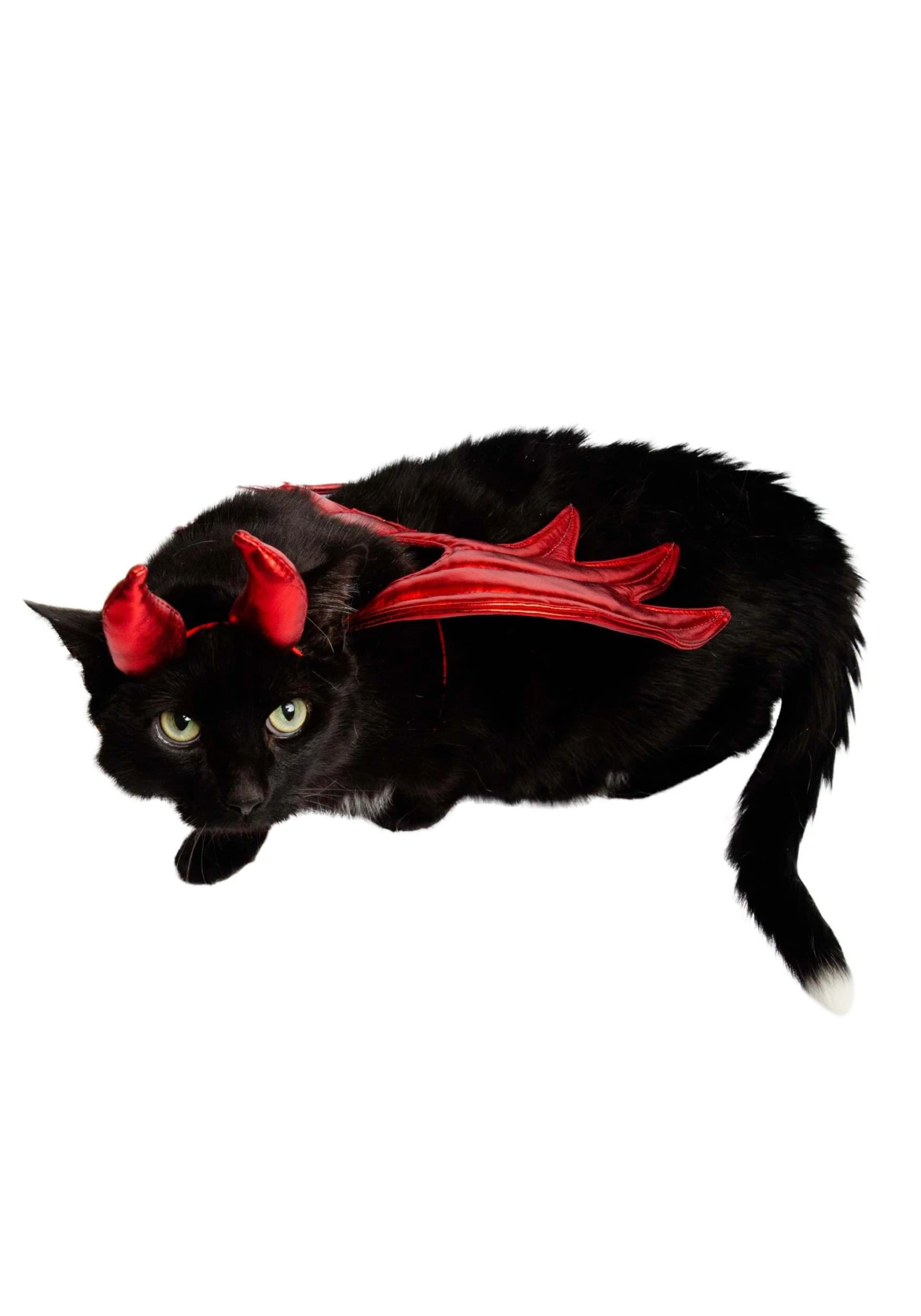 Naughty or nice, your pet is the best person you know! Celebrate your little mischief-maker by dressing her in this cat-or-dog-appropriate Devil Costume for Pets! The costume set includes a pair of shiny red devil horns that adjust to size and look hilarious no matter what the occasion. Pair it with the matching red bat wings for a costume that is as sinister as it is cute!Â