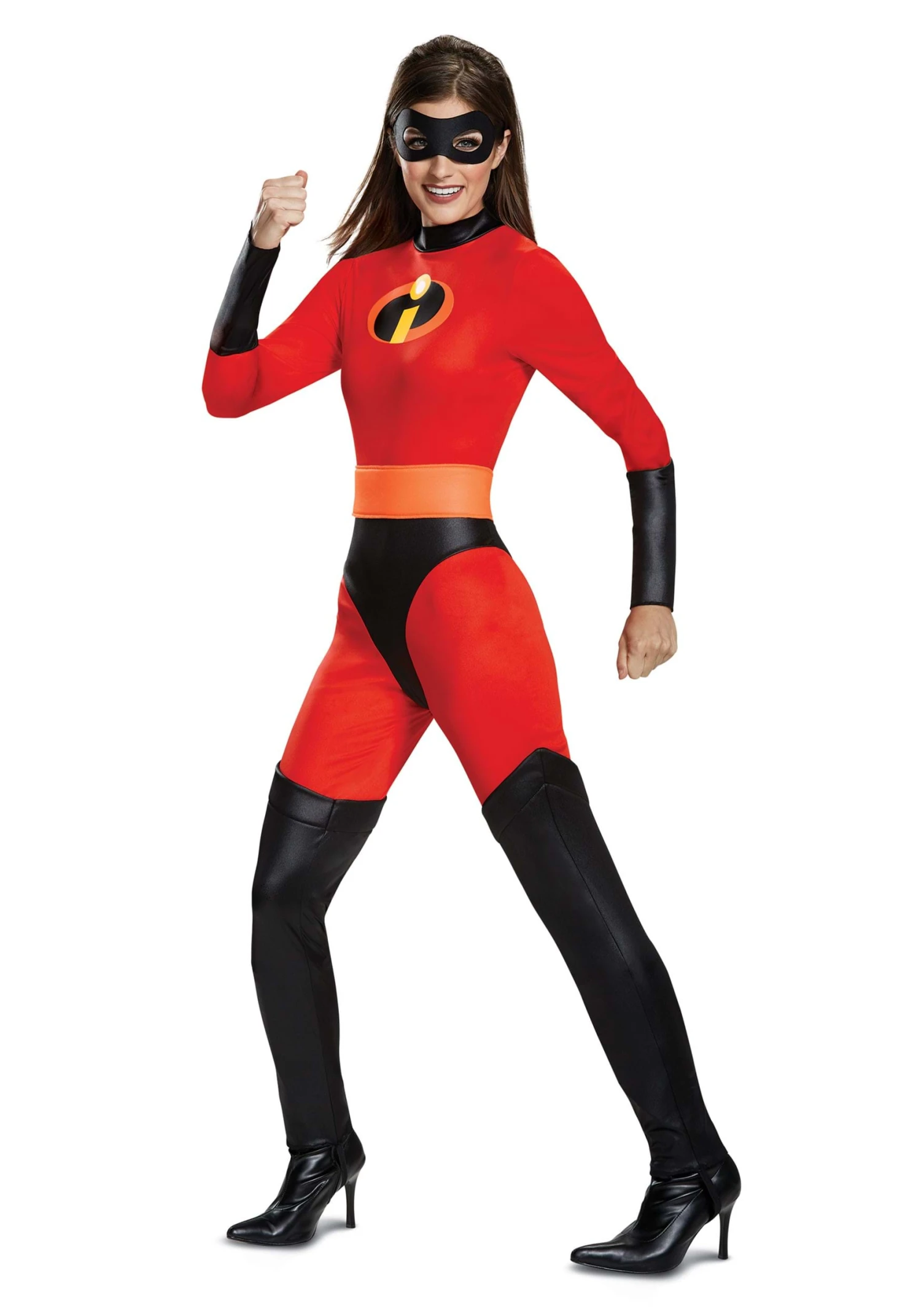 The best way to make sure that your heroic activities are successful is to gear up in some of Edna Mode’s most recent creations. This Incredibles 2 Classic Mrs. Incredible Women’s Costume is the sure-fire way to go from gal to Elastigirl. This comfy red and black Pixar costume is the perfect way to look fantastic as you get ready to kick butt. It features all the iconic designs of the matriarch of the Parr family, including the orange belt and the I insignia of the Incredible kin.
