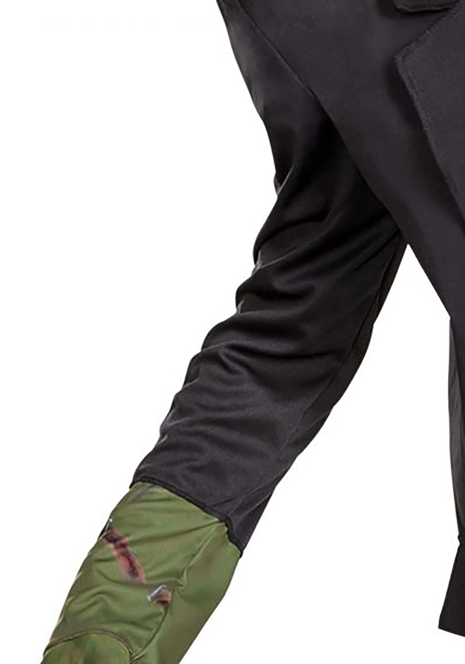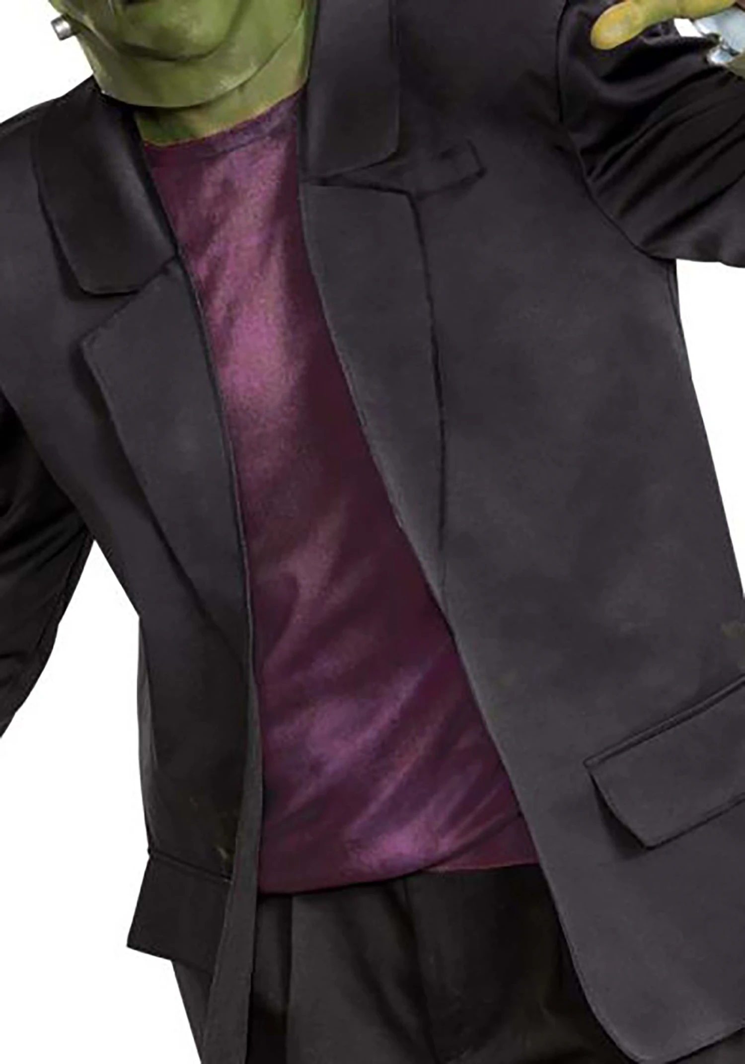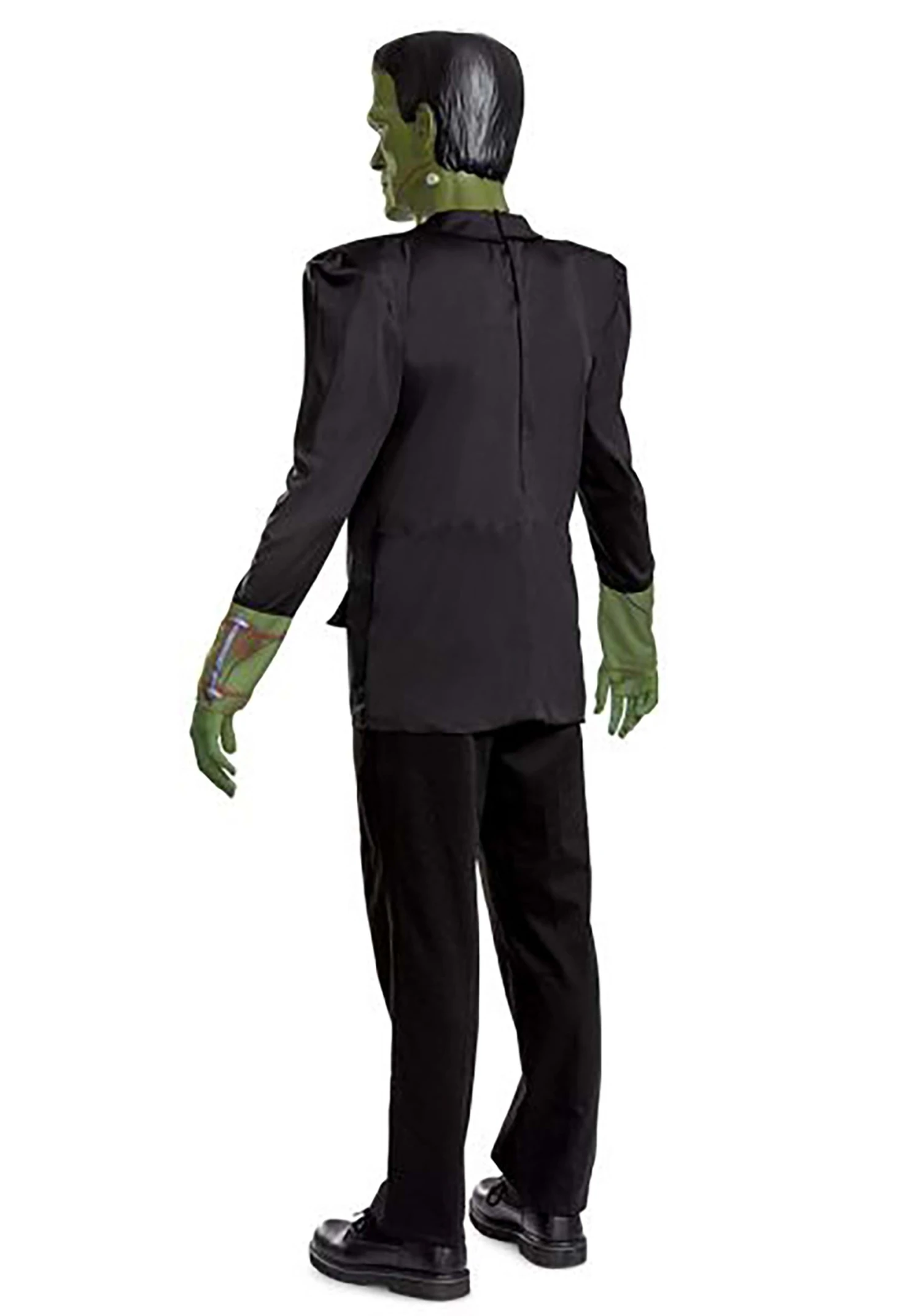Take control of your own destiny and face your maker in an epic showdown when you wear your officially licensed Monsters Deluxe Frankenstein Costume for Adults! The outfit includes a one-piece top that consists of a dark red shirt front sewn into a a sport-coat-style jacket. The jacket has false front pocket flaps and the cuffs of its sleeves are green fabric that looks like the famous monster’s skin. Add the full-head mask to complete the transformation!Â