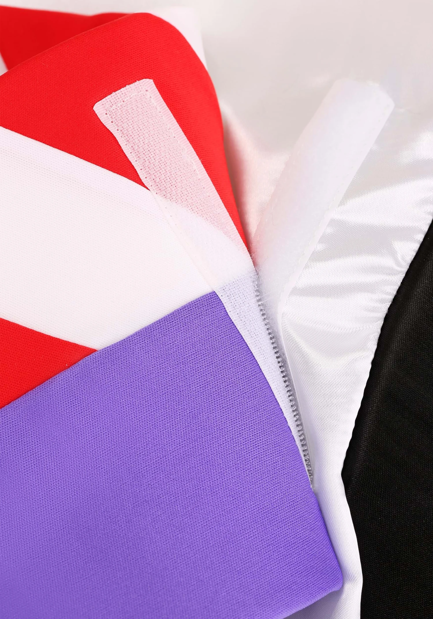 You will be proud of your spacesuit just like the flying action figure Buzz Lightyear. The deluxe costume features a detailed jumpsuit that zips up the back. The jumpsuit is made of satin textured material and has a padded chest, while the longs sleeves are silver and black around the shoulders the forearms features an attached shiny vinyl pad. The back of the suit has Hook and Loop fastener to attach the included foam wings. The vinyl boot covers bright green and shiny white and secure under the foot with an elastic strap. The costume also includes the purple hood. Complete this look with the additional white costume gloves or the white costume boots from our related accessories. You will go to infinity and beyond in this futuristic costume for Halloween.