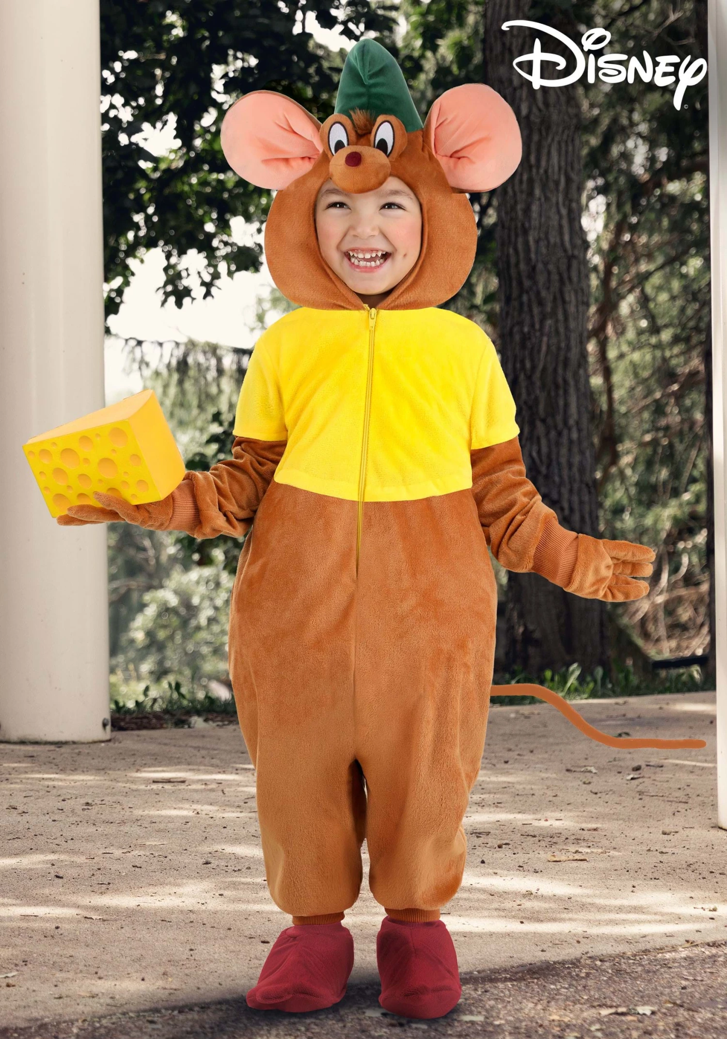 Meanwhile the hood provides Gus’ familiar smile with embroidered eyes, a soft-sculpted muzzle, and large ears. A front zipper ensures quick changing and rib knit cuffs help keep the costume in place. Gloves and shoe covers complete the look.