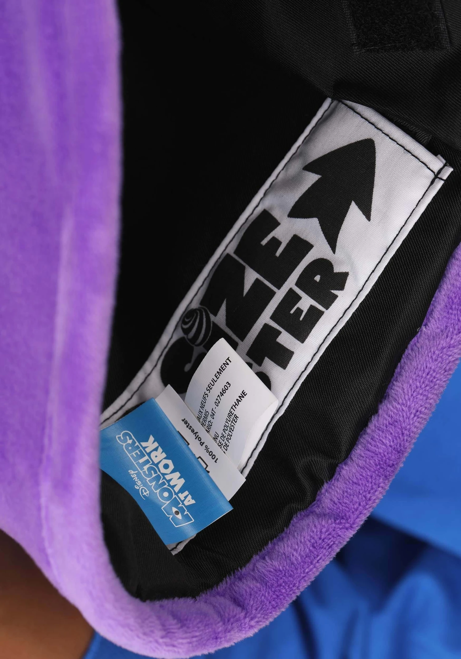 Learning to be a jokester will be a snap when you wear your exclusive, officially licensed Disney Soft Monsters at Work Tylor Costume Hat! The accessory is covered with soft polyester velour and layered with foma to give it shape. It’s embroidered with Tyler’s friendly eyes and fanged smile. The top of the hat is sewn with blue felt hair and the stuffed horns sewn to each side of the hat can be bent and posed.Â
