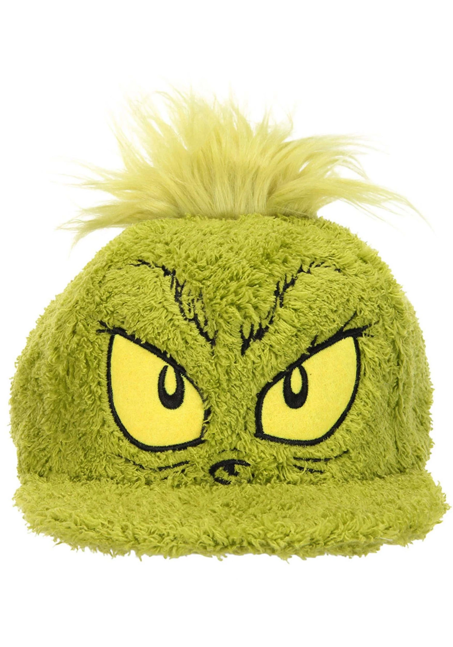 Feel the warm fuzzy growing in your own heart when you don this Dr. Suess Fuzzy Grinch Cap. This baseball cap features the green look of the Grinch’s face, all in fuzzy form! The tuft of mossy hair on the top of your head will be a delight, but not nearly as much as the curiously judgemental look of the Grinch’s eyes. Â