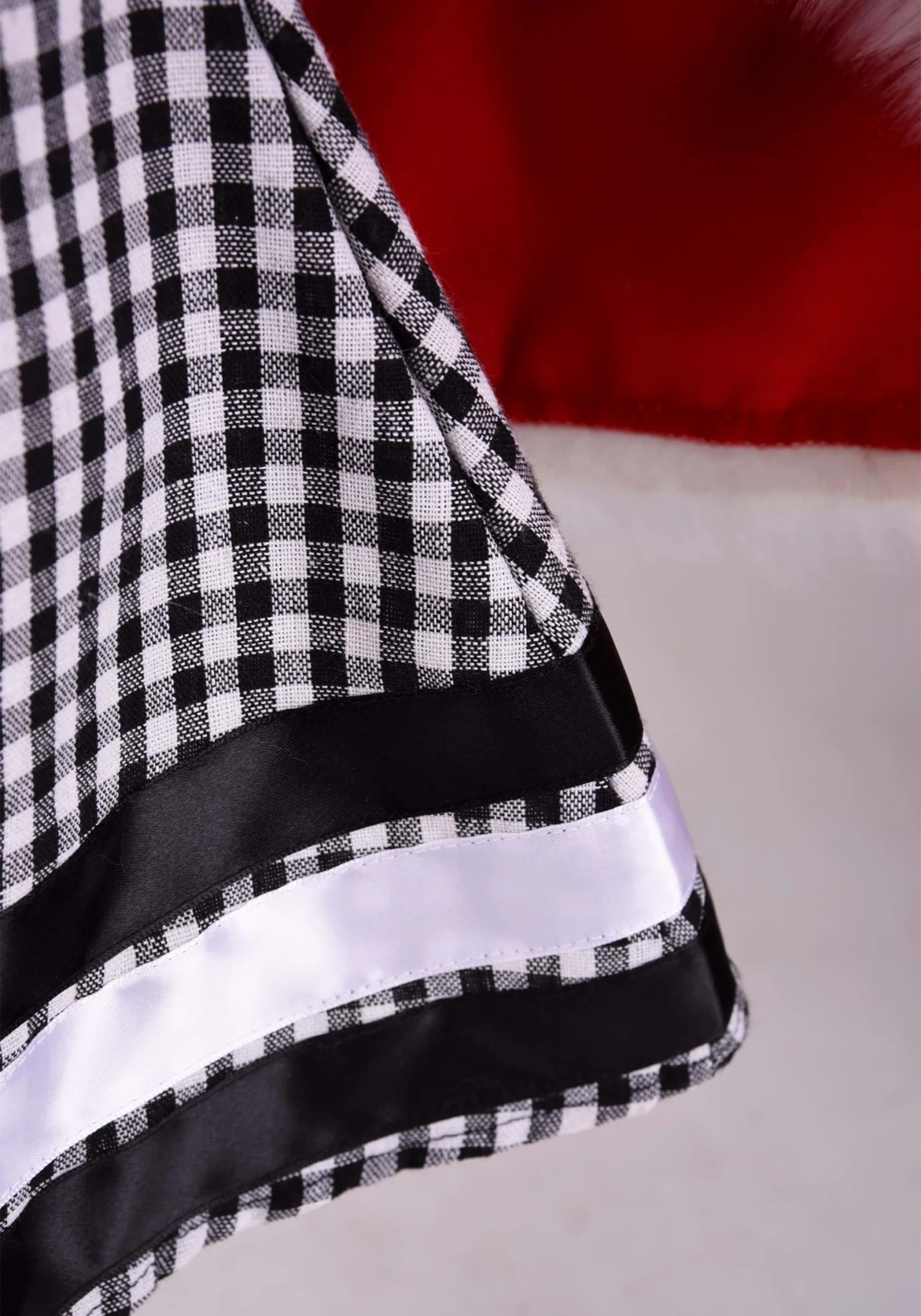 Nobody, not even the Grinch himself, will be able to resist smiling at the sight of your little one in this sweet costume set, inspired by Dr. Seuss’s famous character. The black and white gingham dress has puffed sleeves and ribbon trim along the hem. The back secures with hook and loop fastener for simple transformations.
