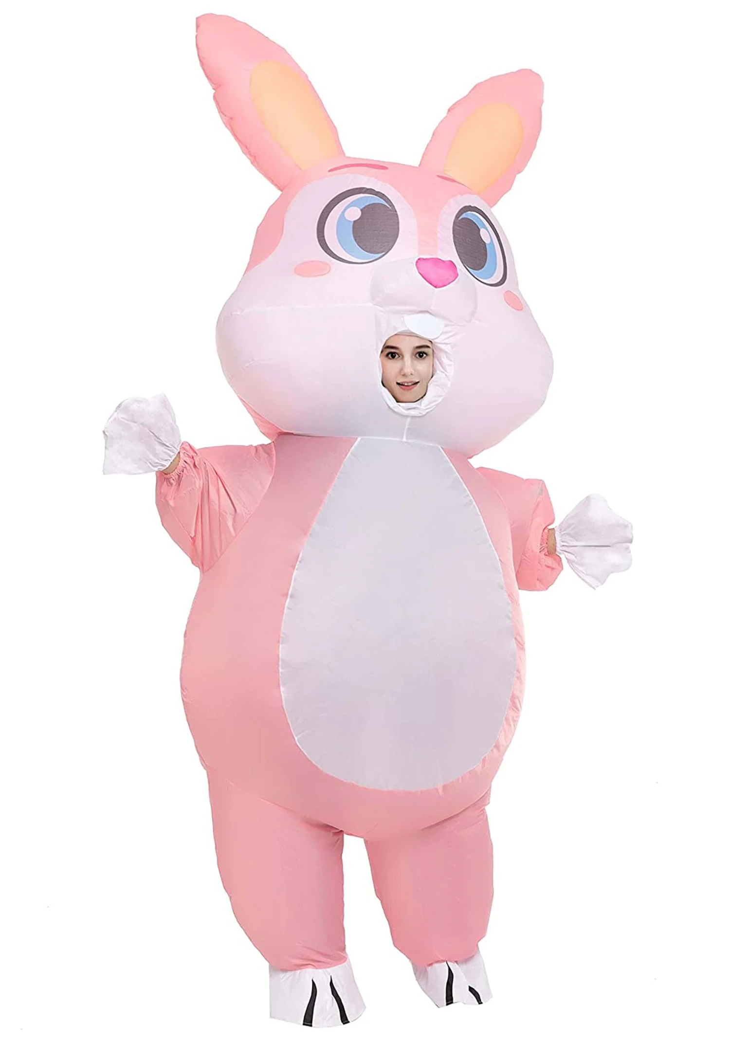 With its eye-catching pink color, this costume is a showstopper. You’ll be the center of attention, spreading joy and laughter wherever you hop. Whether you’re attending a Halloween party, hosting an Easter celebration, or simply looking to embrace your love for bunnies, this inflatable costume is the perfect choice.