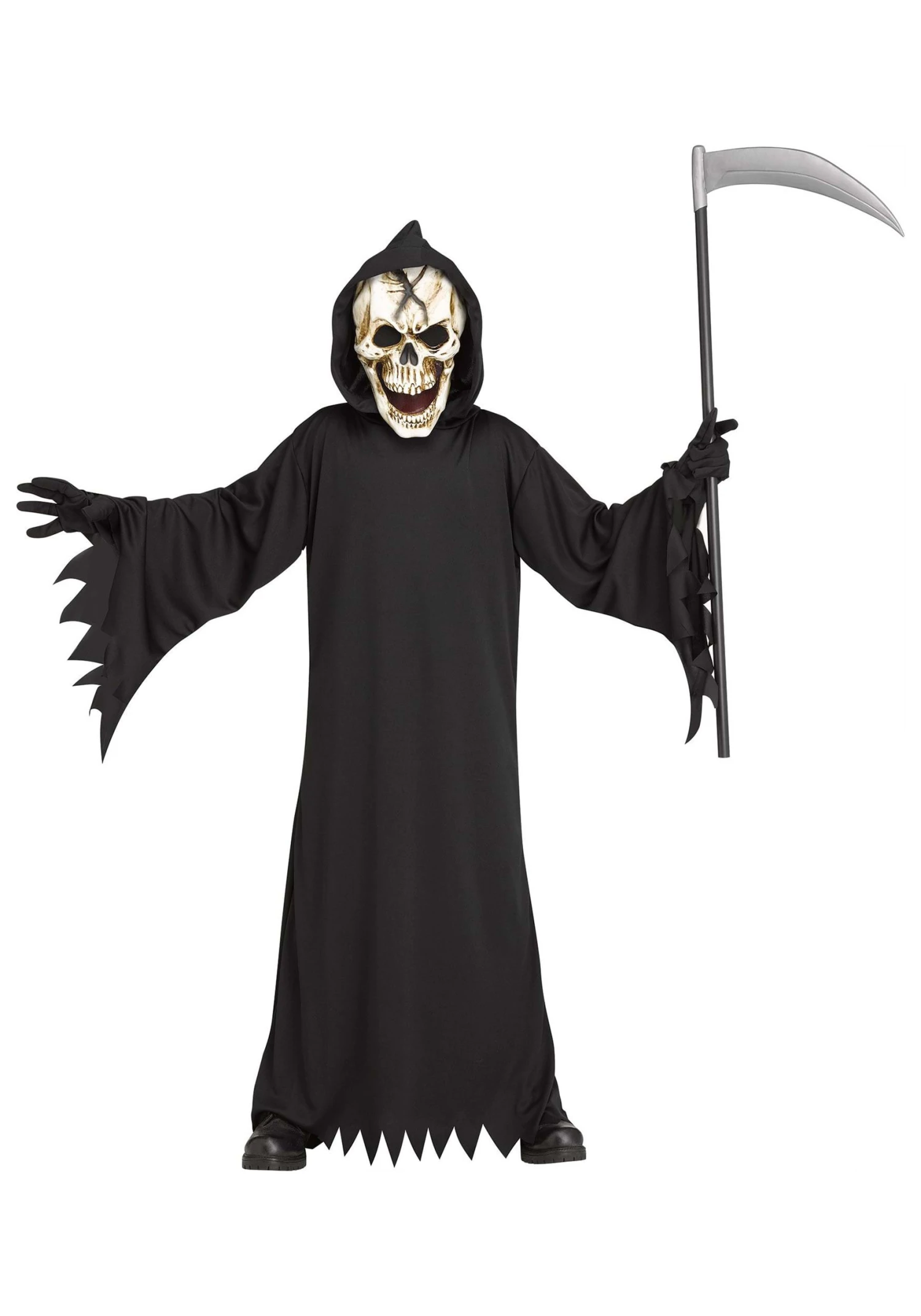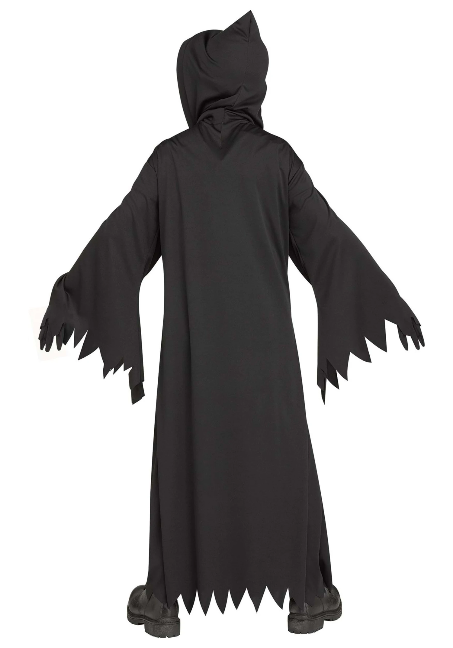 Serve up screams and jump-scares in this incredibly detailed Light-Up Kid’s Mutant Reaper Costume! The long black robe covers your street clothes and features jagged hemlines for a creepy effect. The hood pulls up over your hair and a haunting death’s-head skeleton face stares out of the opening! The mouth glows red for an extra-chilling touch.Â