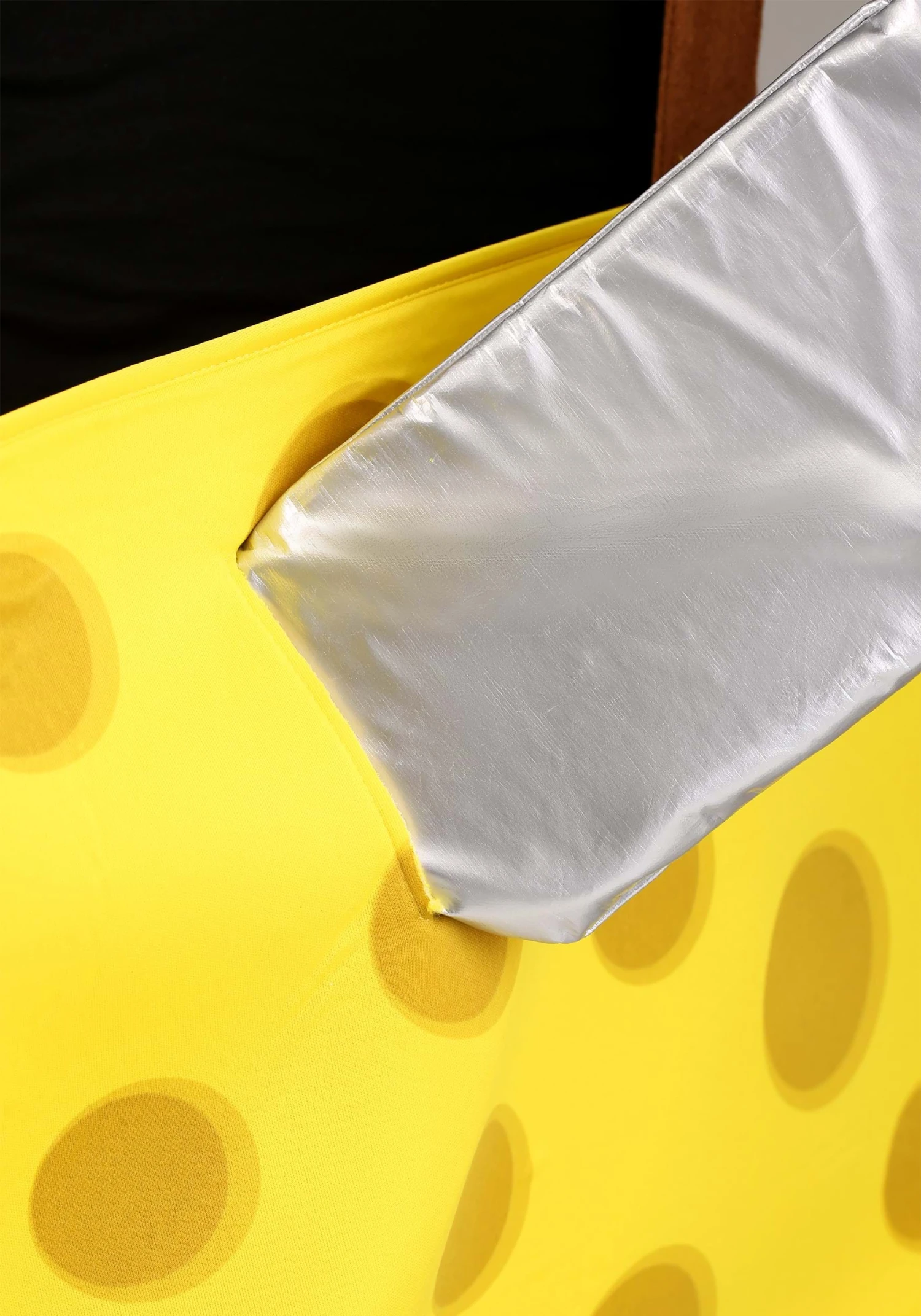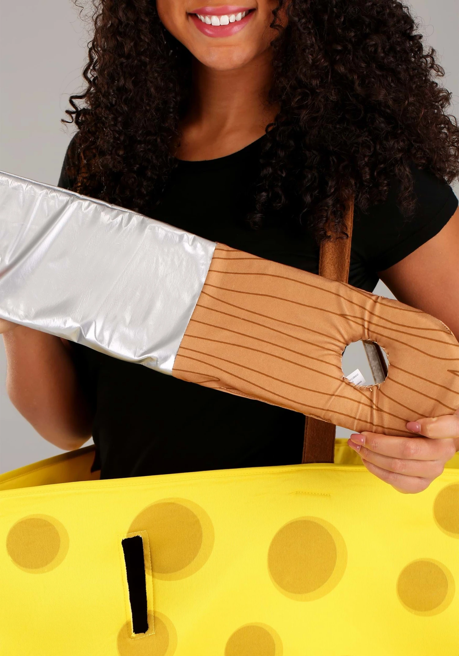 - Yellow cheese shaped waist piece with brown suspenders