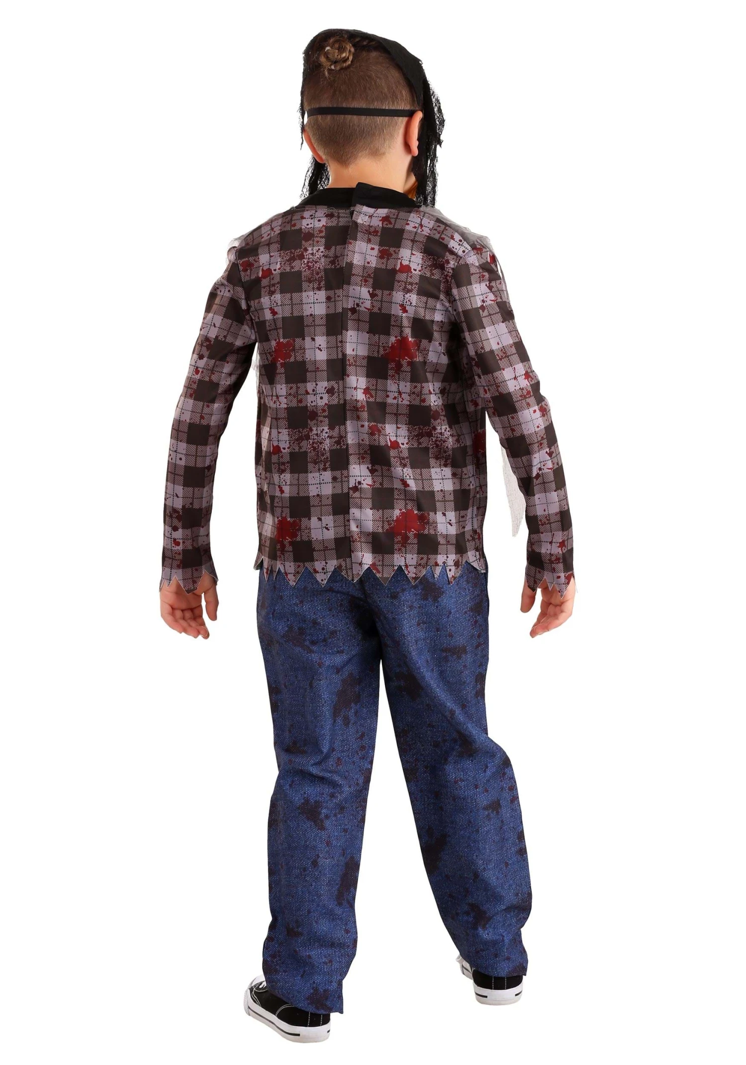 Prey upon the living (if you can shuffle fast enough) with this Ghoulish Zombie Costume for Kids! The exclusive outfit includes a ragged plaid long-sleeved shirt hanging open over rotting flesh printed on the tank top underneath. The tank top is printed with disgusting images of oozy guts and yellowed bones. The blue pants have black splatter marks all over them (from your victims’ blood, maybe?) The mask covers your face and looks like skin peeling off of a skull.Â