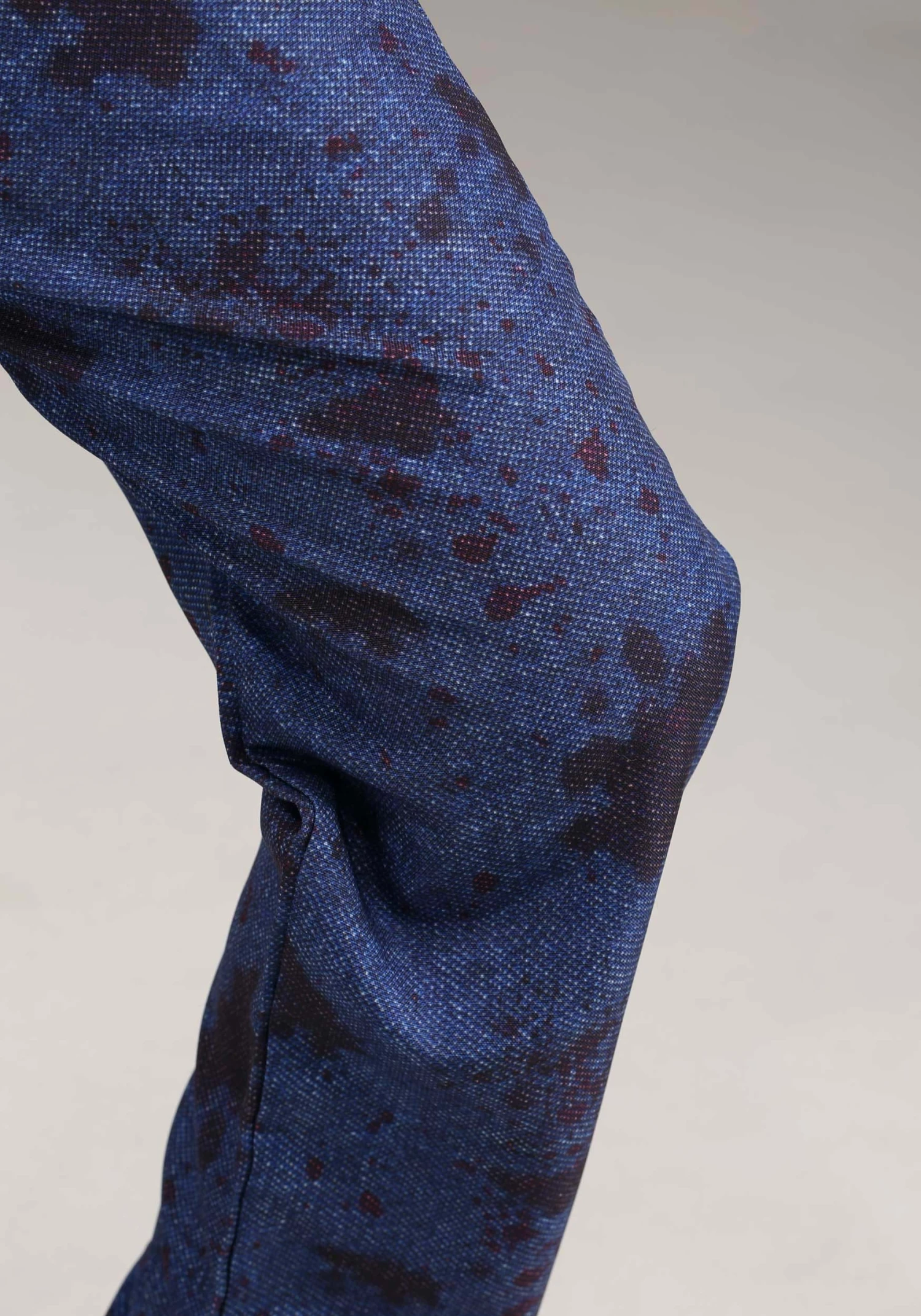 - Plaid print shirt has jagged hemlines, printed blood stains