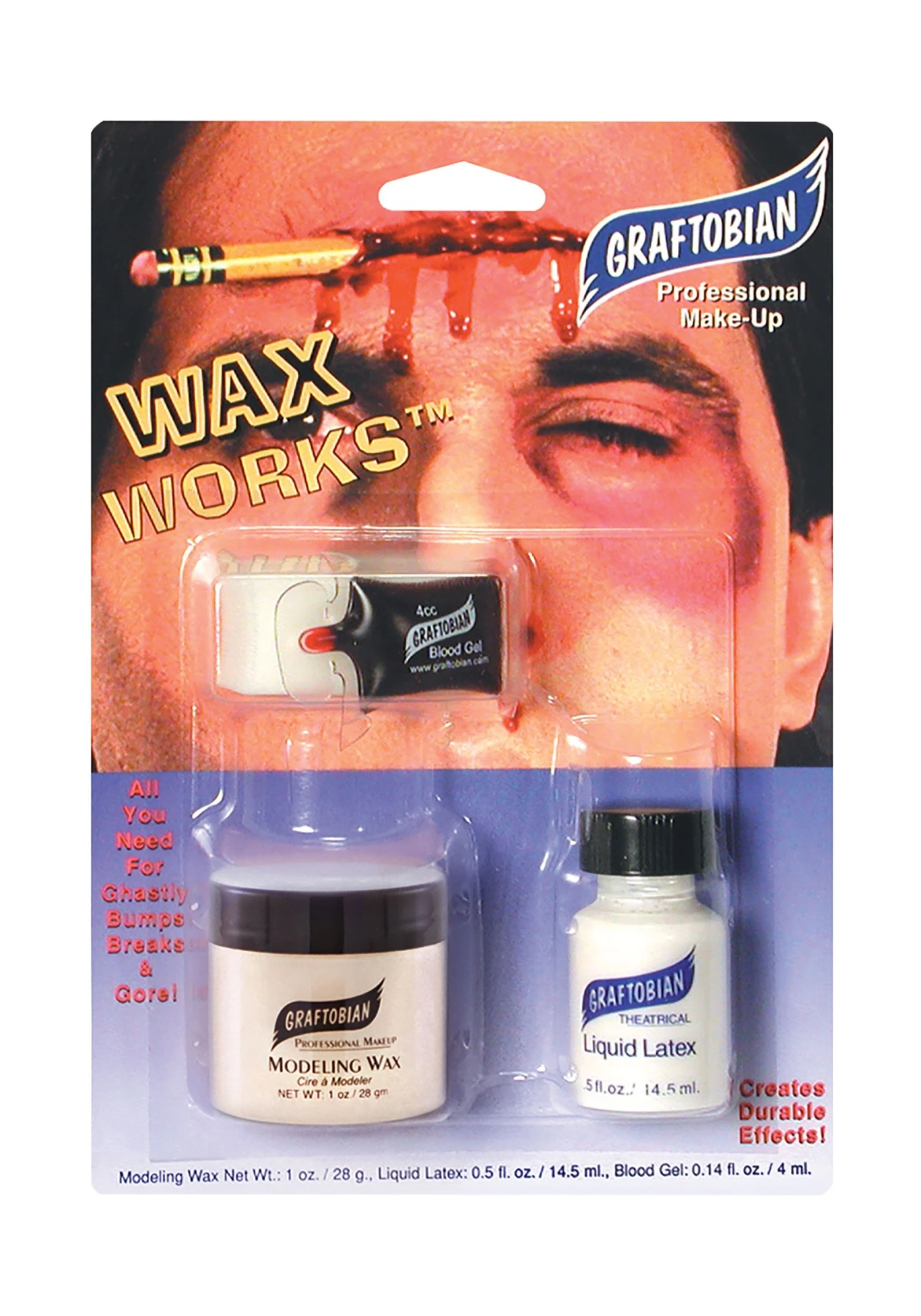 This kit will let you make your face 100 percent more disturbing. Actually, you can go as far as you choose. The modeling wax can create swollen features, cuts, or gore. The theatrical liquid latex is handy to create bloody scabs and a number of liquidy horrors. And of course, the look is topped off with the traditional pouch of blood because what are a few bumps and bruises without a little blood?
