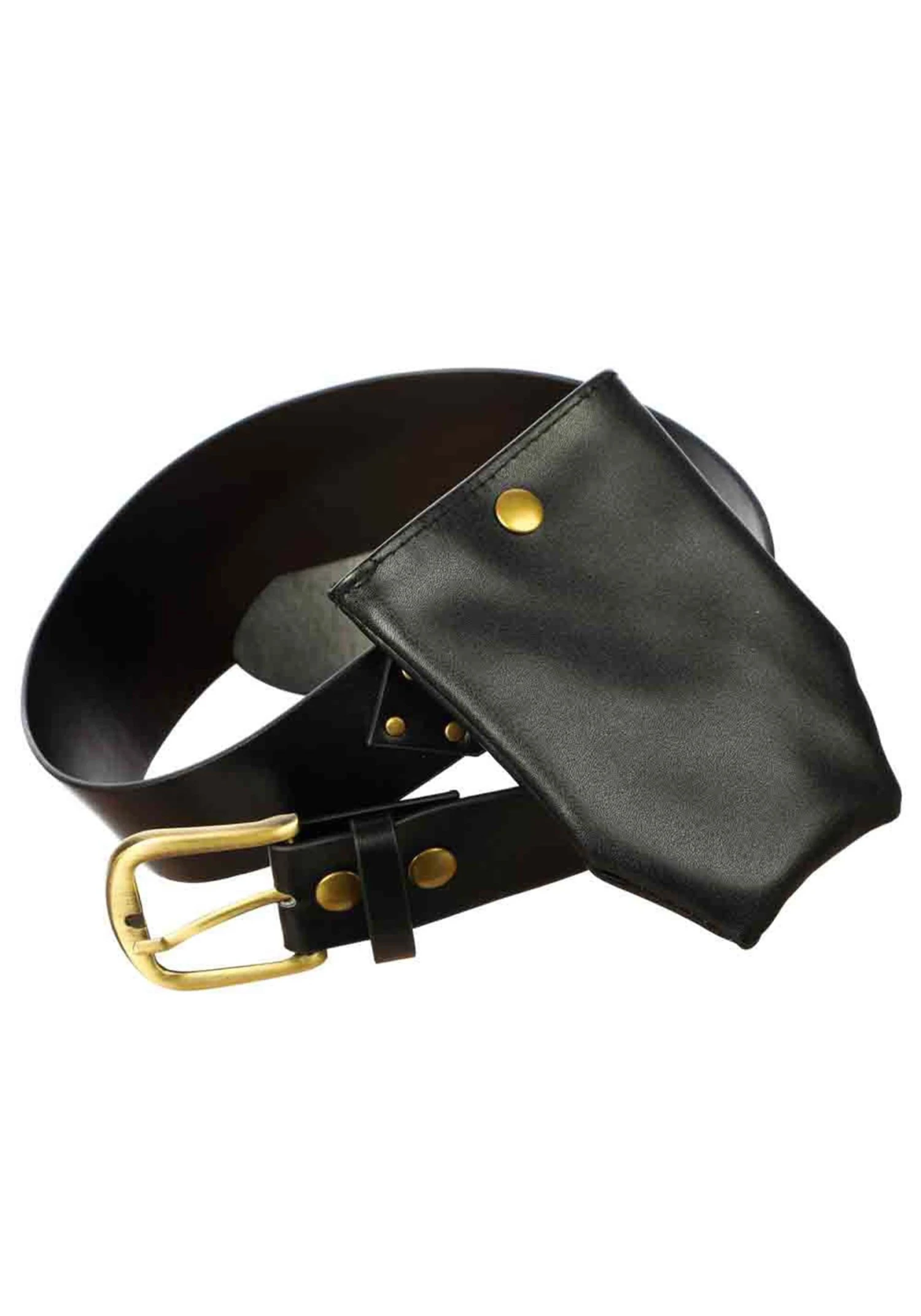 - Faux leather belts have antique-gold-tone metal buckles, rivets, & snaps