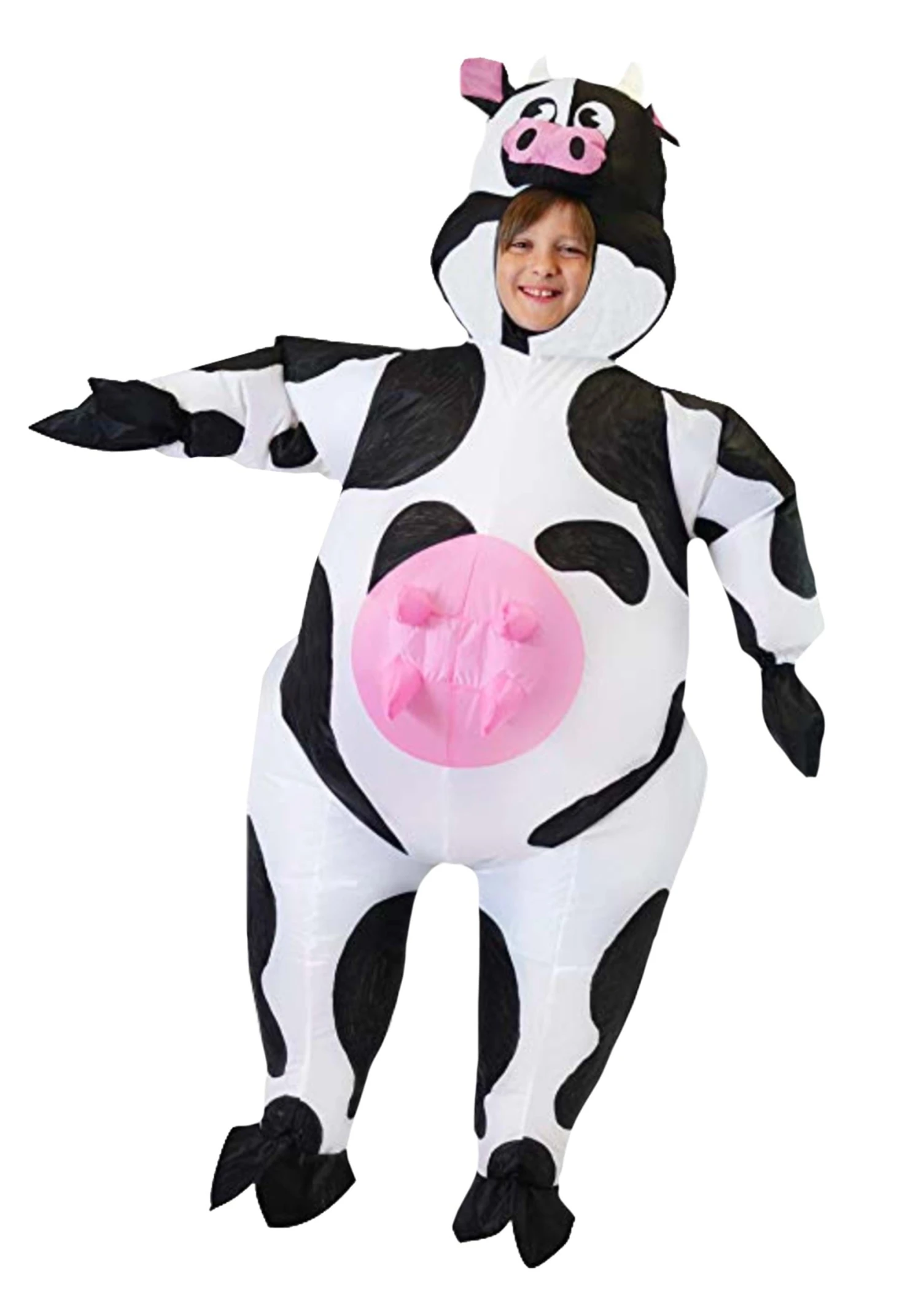 But the best use for this Kid’s Inflatable Cow Costume is, of course, Halloween! Imagine your little one trick or treating through the neighborhood in this clever costume. It’s too cute! And definitely a step up from your run-of-the-mill fabric cow costume.Â