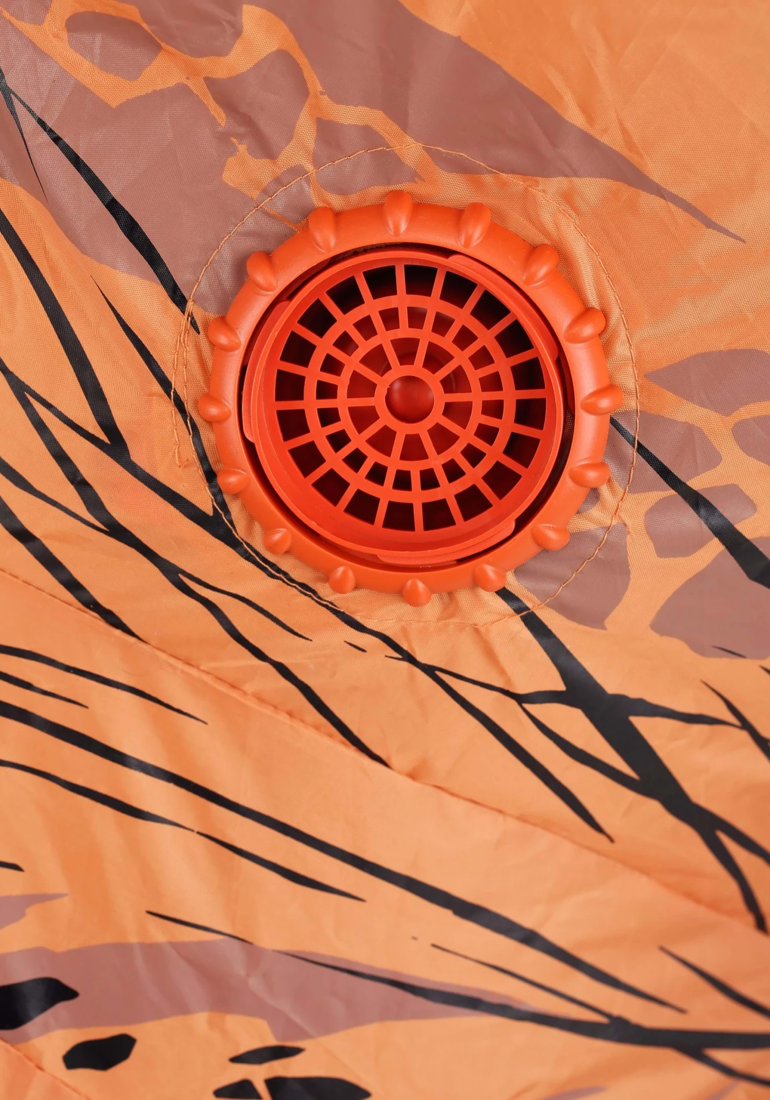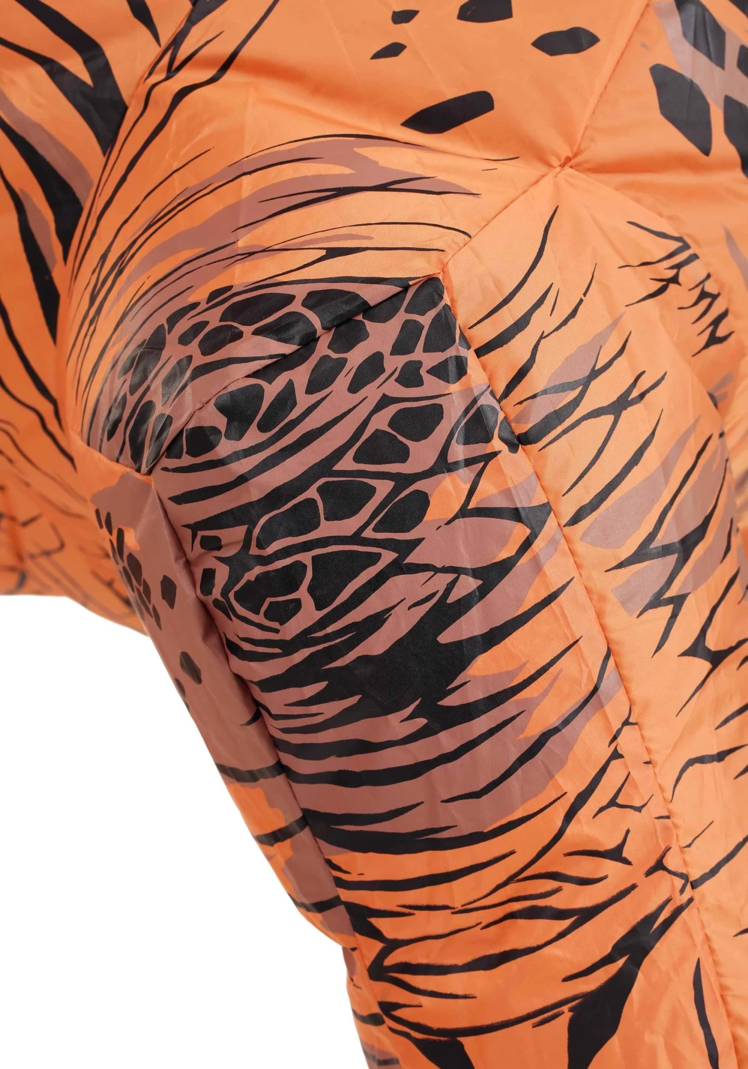Suit your kiddo up in style with this Inflatable T-Rex Kid’s Costume! This polyester jumpsuit is easy to step into and features elastic at the wrists and ankles to keep the costume in place. It zips up the front, so no trouble with any values or hook and loop fasteners. A few AA-batteries and the flip of a switch activates the fan just over the hip and, in no time, your kiddo’s dinosaur look is roaring to life! We include a drawstring cord where your kiddo’s face sticks out below the T-Rex head, too, so they’ll have a secure fit and full visibility while going on their dinosaur rampage. Team up with a hoard of other dinos for some serious fun or just enjoy watching them perfect their awkward athletics.