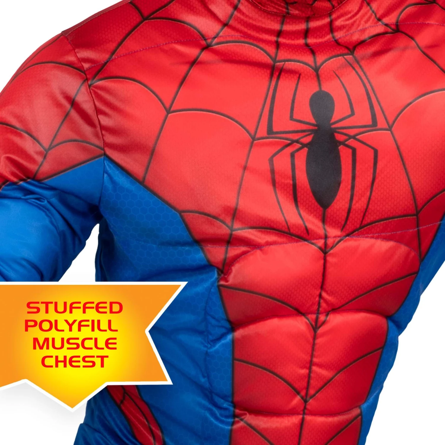 Do (almost) whatever a spider can in this officially licensed Spider-Man Costume for Adults! The jumpsuit fastens up the back and is made of comfortable red and blue material. Its chest and shoulders are gently padded and sewn to give them a muscular appearance. The torso, arms, and lower legs are printed with a spiderweb pattern, and the chest is embellished with a spider graphic. The attached boot covers secure under your feet. Hide your Peter Parker identity behind the included Spider-Man mask!Â