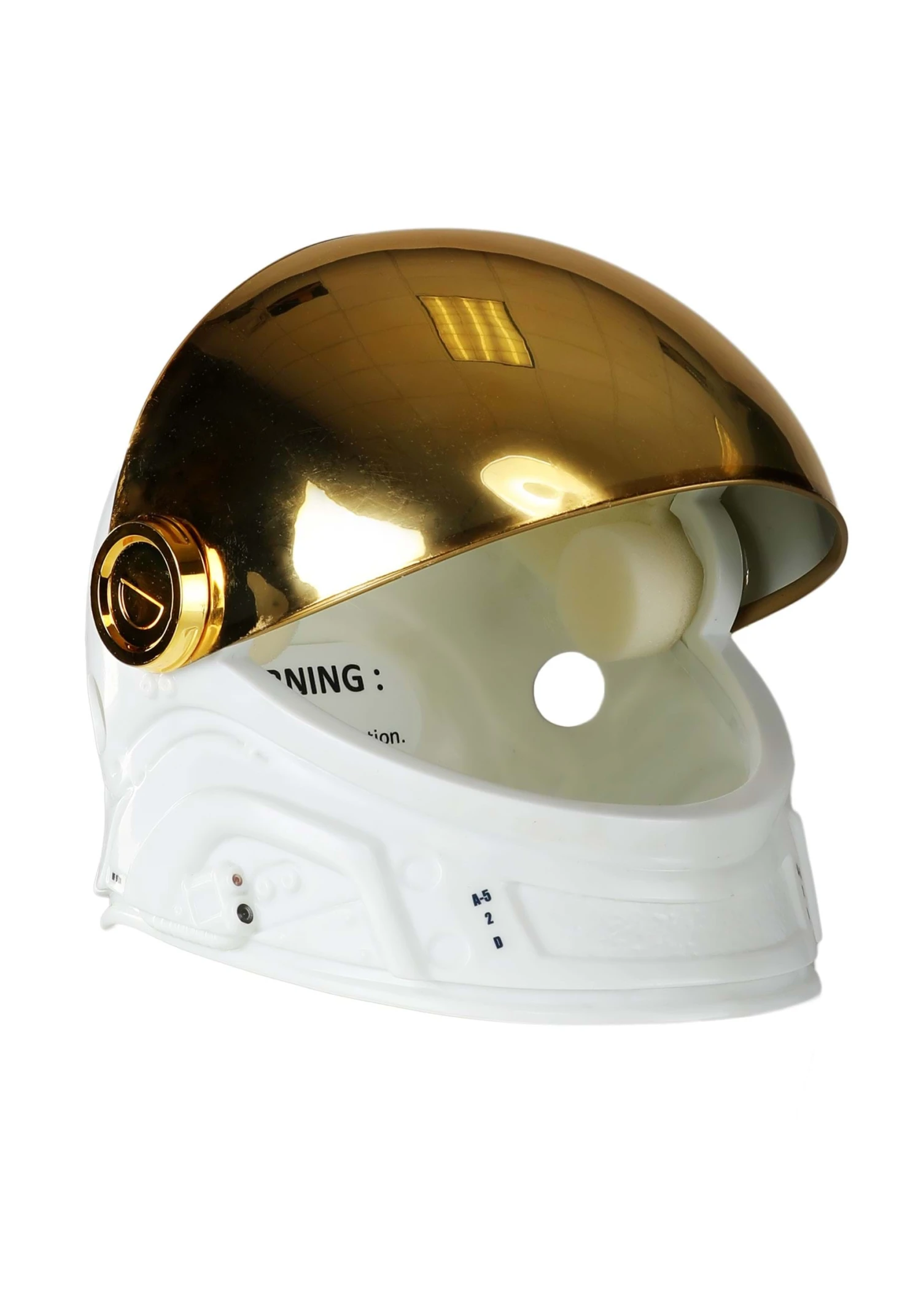 This beautiful space helmet was designed by our in-house creative team. The reflective golden visor flips up to reveal your child’s face once they’re safely back in the spaceship or on earth. The helmet has molding to hint at high-tech details around the neck. Decals of NASA and the United States flag add interest to the white helmet. Whether your child is wearing this astronaut helmet with one of our full cosmonaut costumes or use it as a tool for imaginary playtime with everyday clothes. Either way, it’ll be a delight to have an instant ticket to the cosmos without even leaving the house!