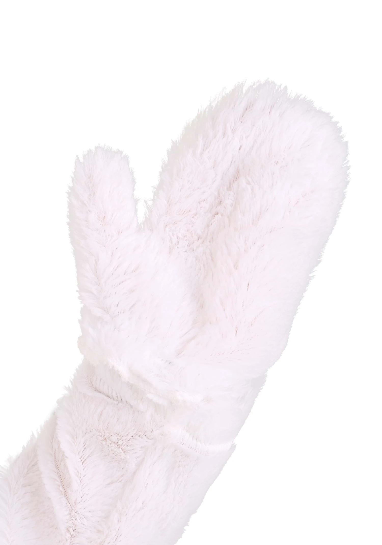 - Mitts sewn to sleeve cuffs have elastic edges; can flip back to free hands