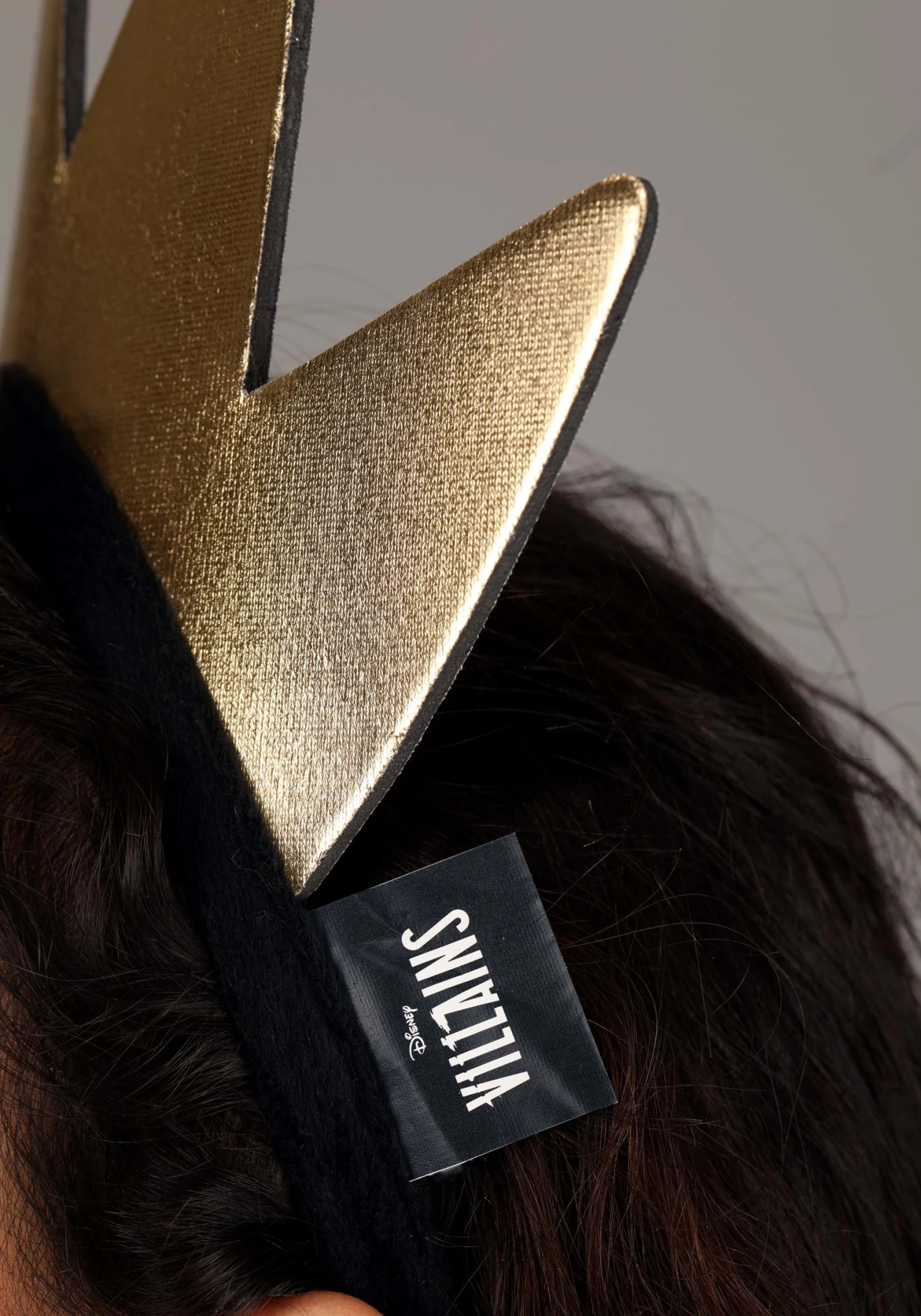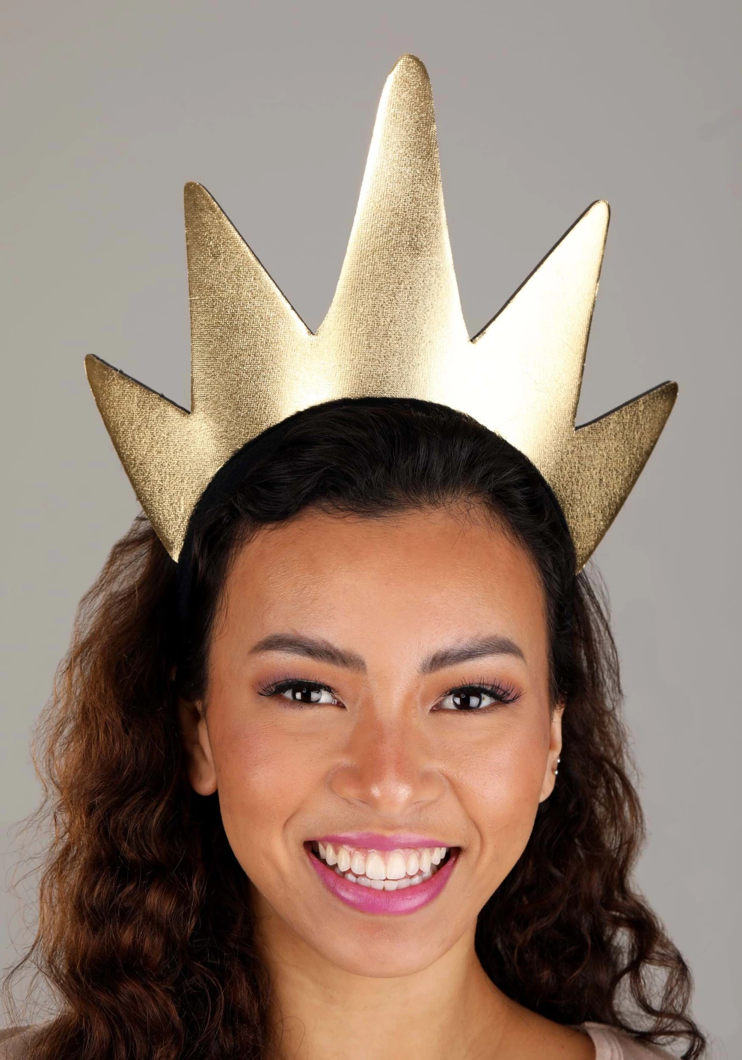 - Gold foam crown is sewn to velour covered plastic headband