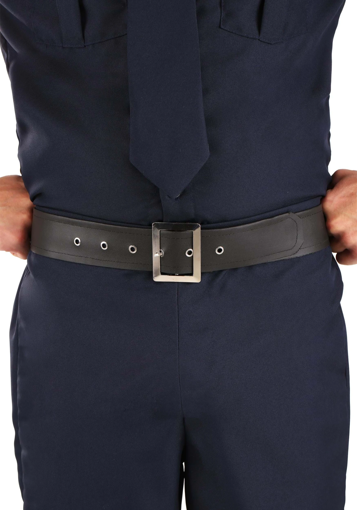 This is one of our Made by Us exclusives! That means it was created by our expert costume designers to capture the look of a real police officer uniform. The costume starts with a value-up shirt that has value-style cuffs, along with valueed shoulder straps. It also has an embroidered police badge on the sleeve. The matching pants have an elastic band around the waist and also has a false fly front to give it a highly realistic appearance. The black, faux leather belt is fully adjustable with a metal buckle in front. The navy blue tie is a real tie, so you’d better start practicing your Windsor knot! Finally, the hat brings the whole look together with a faux leather brim. The costume also comes with 2 badges that you can pin onto the shirt and the hat.