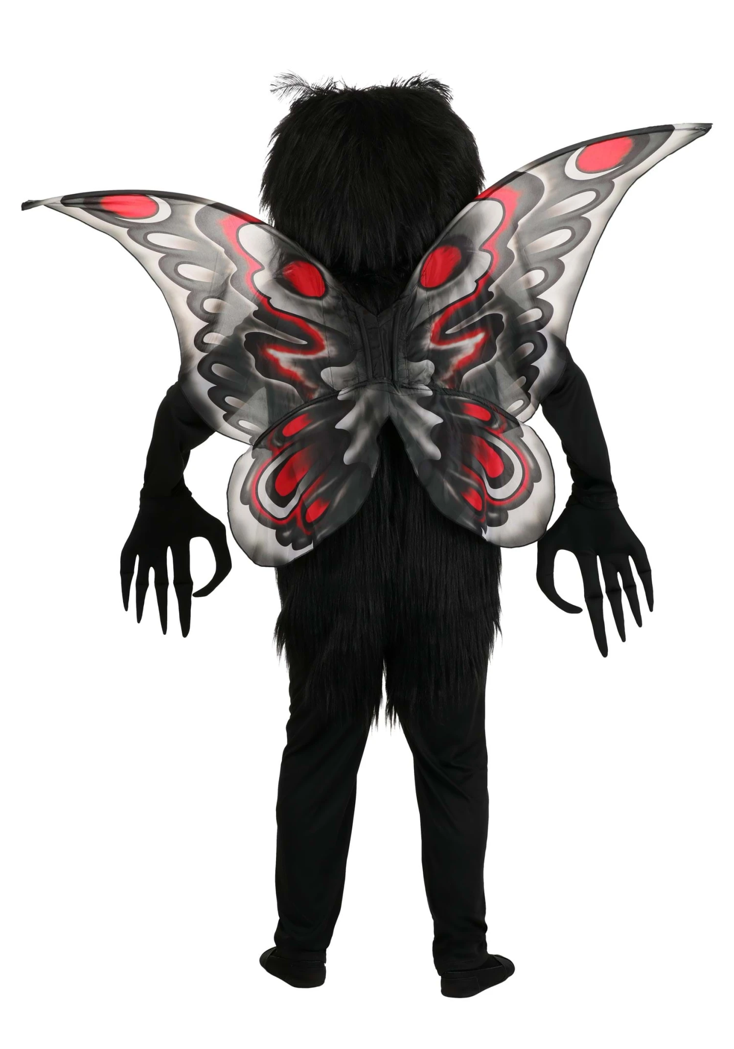 Flap into any Halloween party with the most original costume when you wear this exclusive Mothman Costume for Adults! The full-length black jumpsuit has soft faux fur on the torso to simulate a moth’s downy body. The oversized headpiece is also covered in faux fur, except for two huge red eyes that also serve as viewing ports so that you can see where you’re going. A pair of gloves with long fingers and hooked thumbs adds to the costume’s creepiness. The red, grey and black wings are stretched over wire to give them body. FYI, flying with them has not been tested.