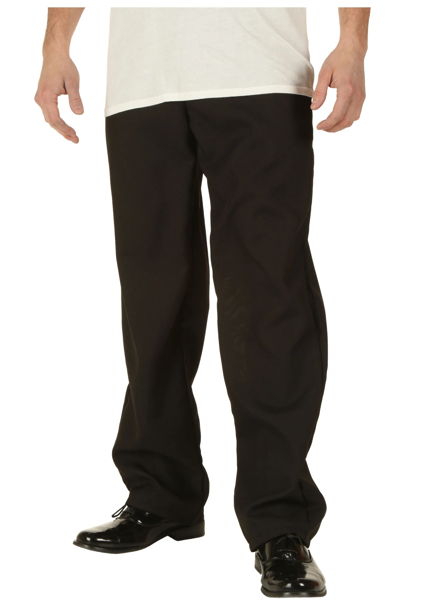 One safe bet is to slap on these Plus Size Black Pants! Black formal clothes all go together with other black clothes, no questions asked. So, go ahead and wear these comfy black pants with your black socks, shoes, belt, and jacket, and you’ll look great. The worst case scenario is that you’ll look like a Maitre D, or a mysterious, sharply-dressed, country singer, but in the world of fashion, it could be much worse!