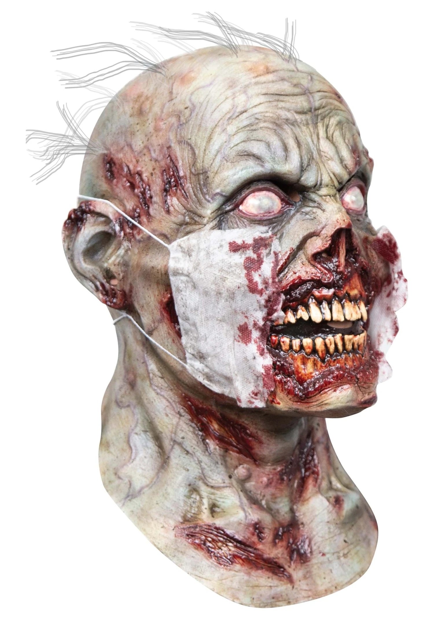 This Scary Adult Patient Zombie Mask will turn you into the terror of the waiting room! The creepily realistic-looking mask covers your entire head and neck, and is molded to look like a greenishly pale zombie baring bloody teeth. Fake lacerations cover the temples, ears, and neck, and the nose is partially gone. The cloudy-looking fake eyes have viewing ports, and an opening in the mouth lets you breathe comfortably.Â