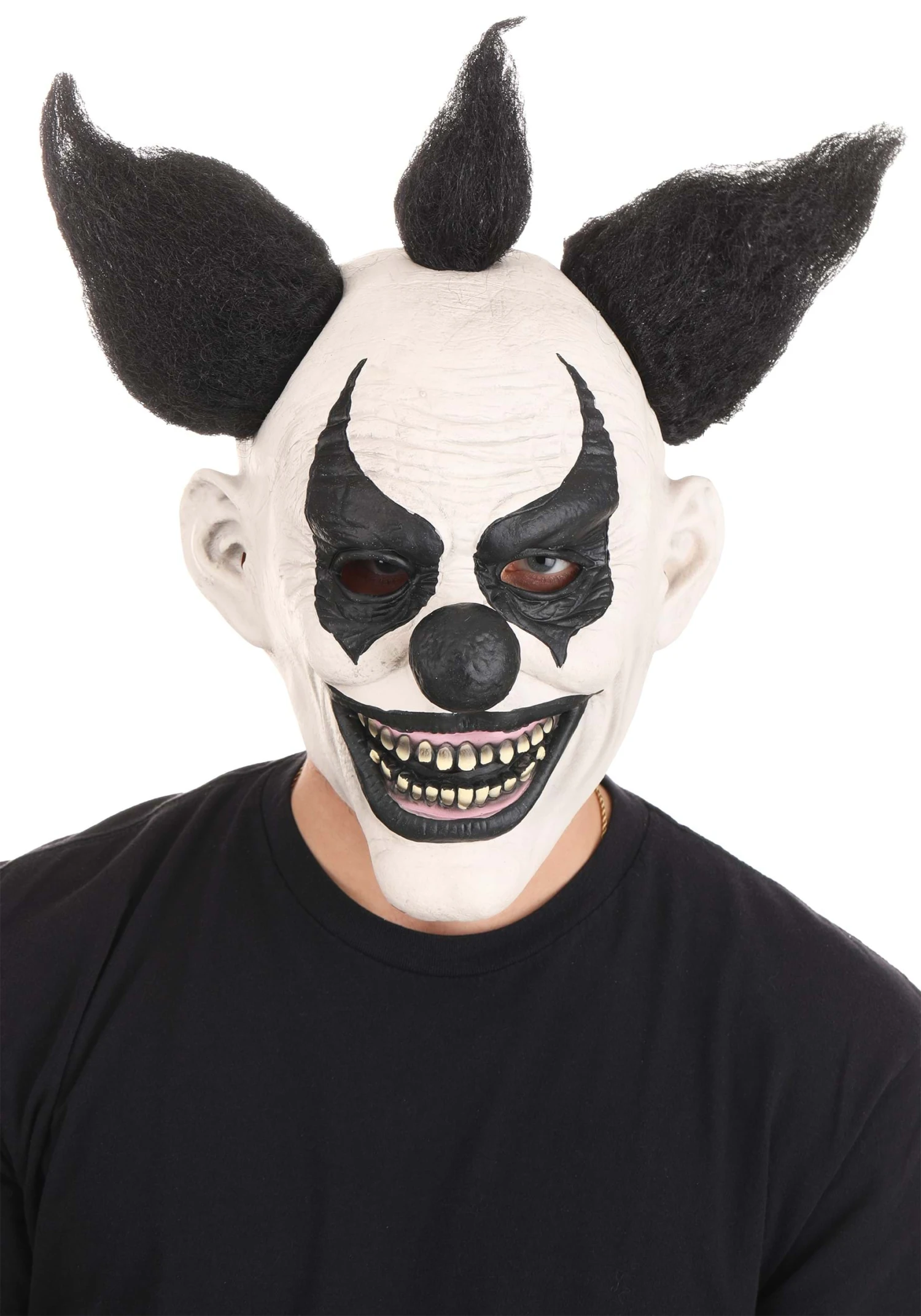 You won’t sell any circus tickets wearing this exclusive Scary Carnival Clown Mask for Adults, but you might just win the prize for Best Halloween Accessory! The molded mask is shaped and painted to look like an evilly grinning clown with black eye and mouth makeup and a black clown nose. Tufts of black synthetic hair puff out from the top and sides of the mask.Â
