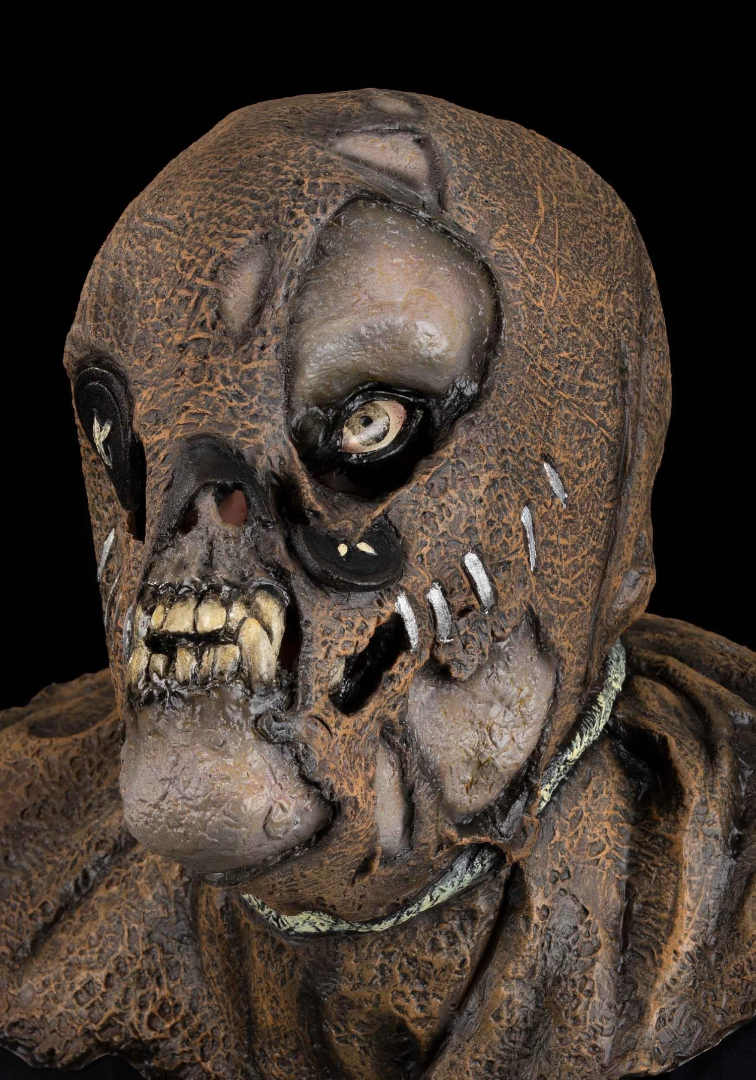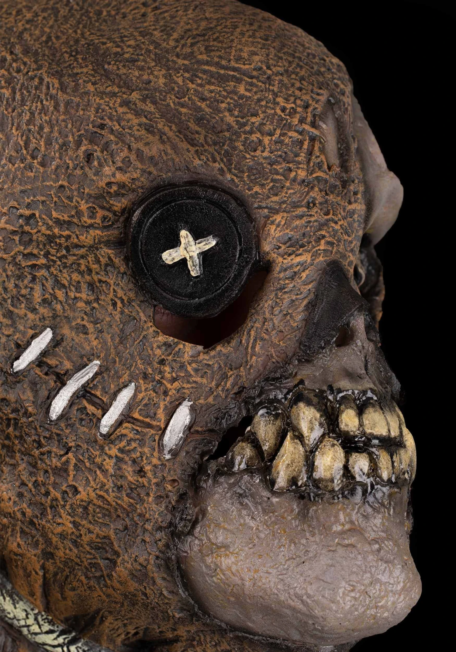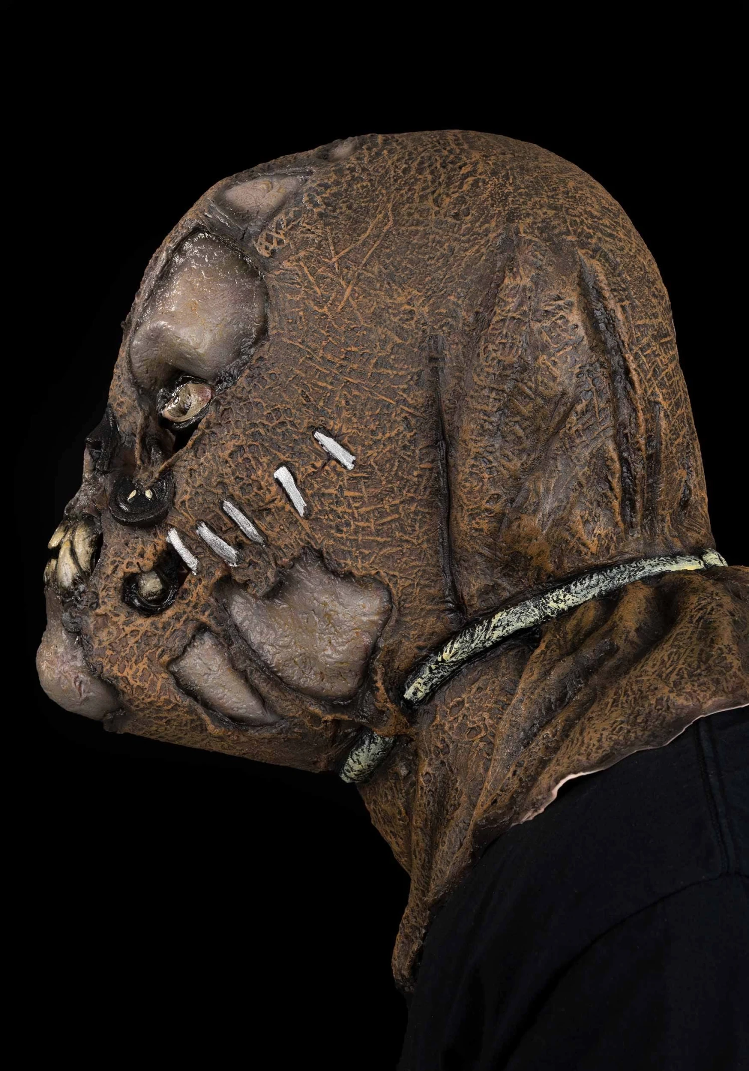 It’s not just the crows who will be terrified when you wear this Sinister Scarecrow Mask for Adults! The molded mask conceals your entire head and shoulders, and is detailed and painted to look like a fanged mouth poking through a rotting burlap sack. One eye is is decorated with an oversized value, and the other appears to be completely red.Â