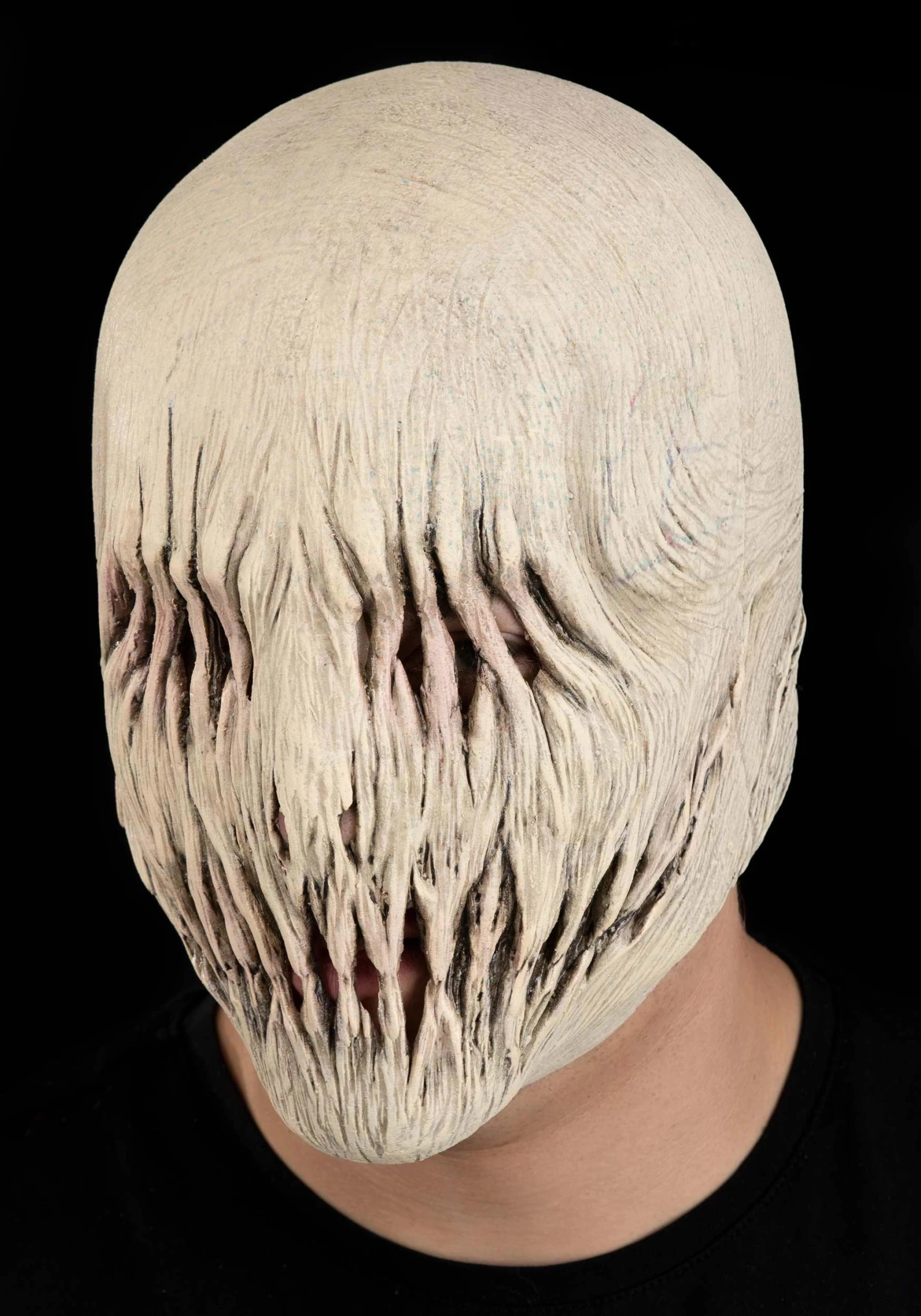 Chills and screams abound when you wear this The Pale One Mask for Adults! The uniquely creepy mask covers your entire head and is molded to look like a hairless face with ghostly, weathered skin. Instead of eye sockets, slash marks in the “skin” give you viewing ports. The mouth also is covered with slashed skin detail, giving it an unsettling appearance.Â